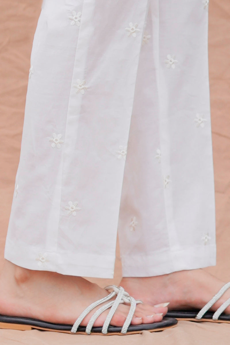 STRAIGHT FITTED EMBROIDERED CAMBRIC PANTS