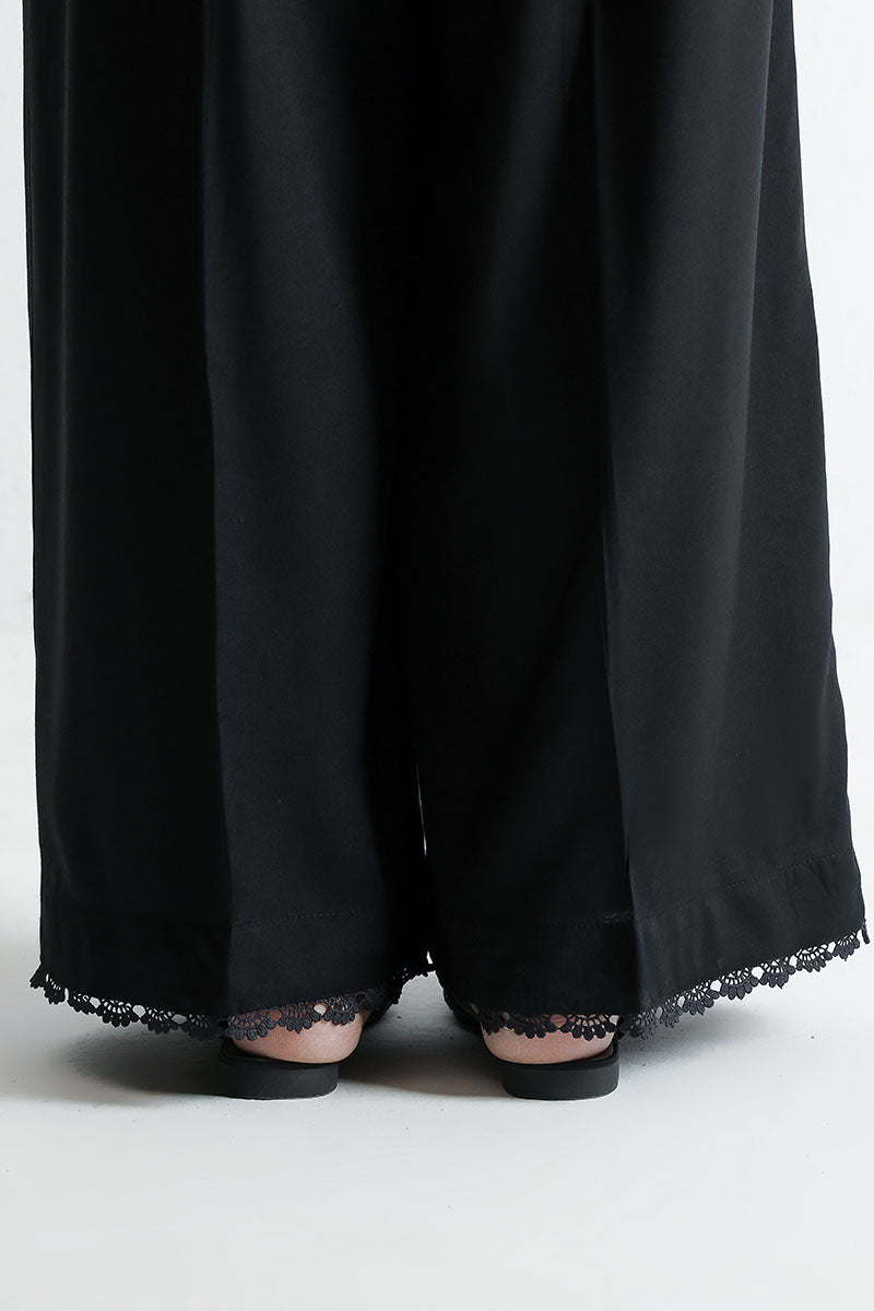 LINEN CULOTTES WITH LACE AT HEM