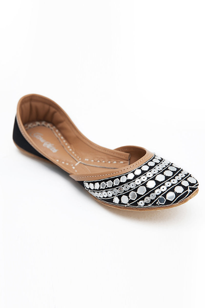 THE UPPER OF THESE FASHIONABLE KHUSSAS HAS MIRROR WORK WITH BROWN BASE. THIS KHUSSA IS A MUST-HAVE FOR YOUR SUMMER WARDROBE.