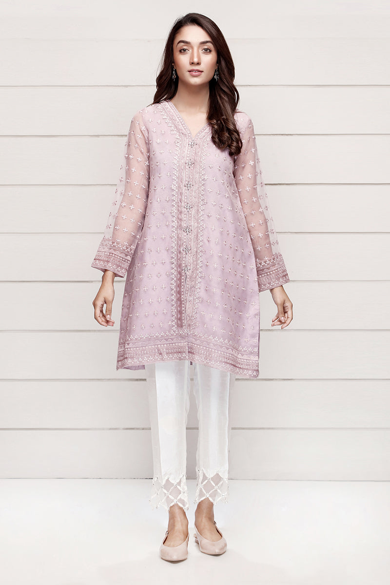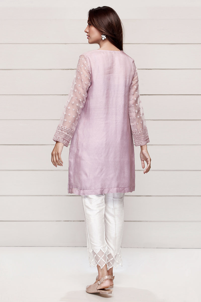 A semi formal organza silk top with embellish work that instantly becomes the center focus of the room once worn with a white trouser work.