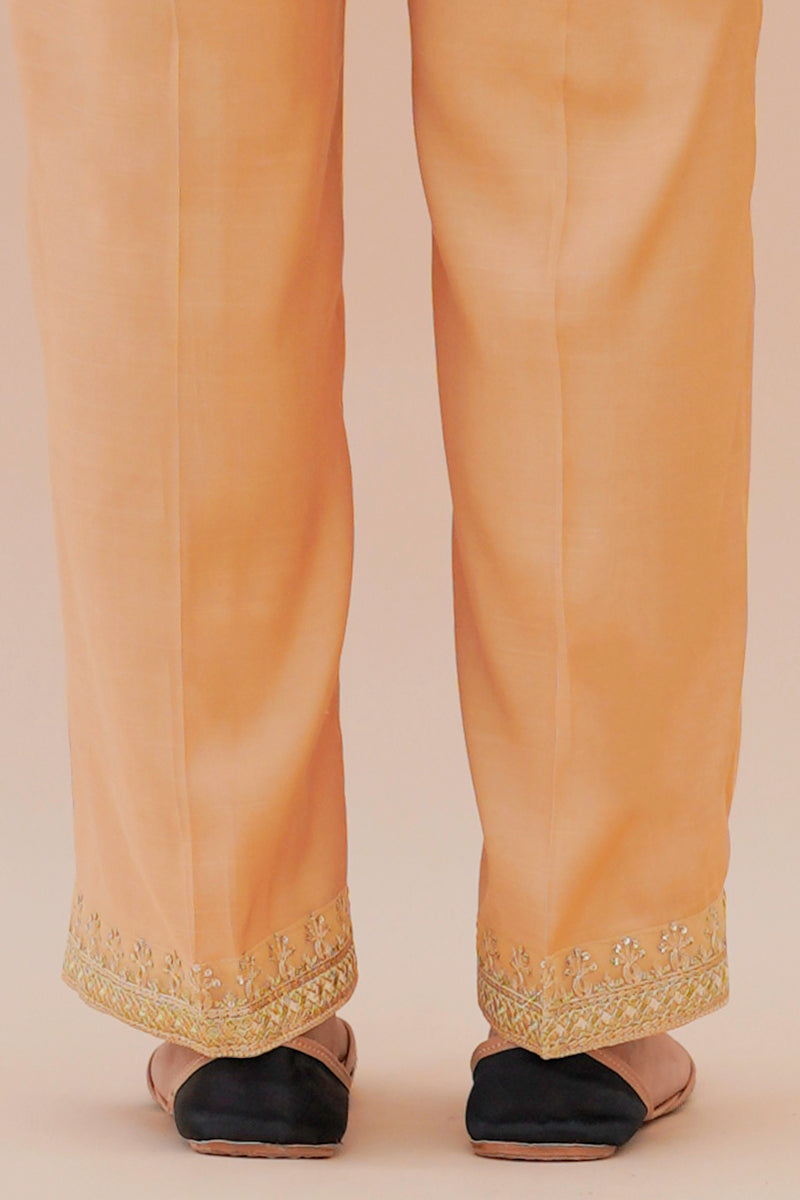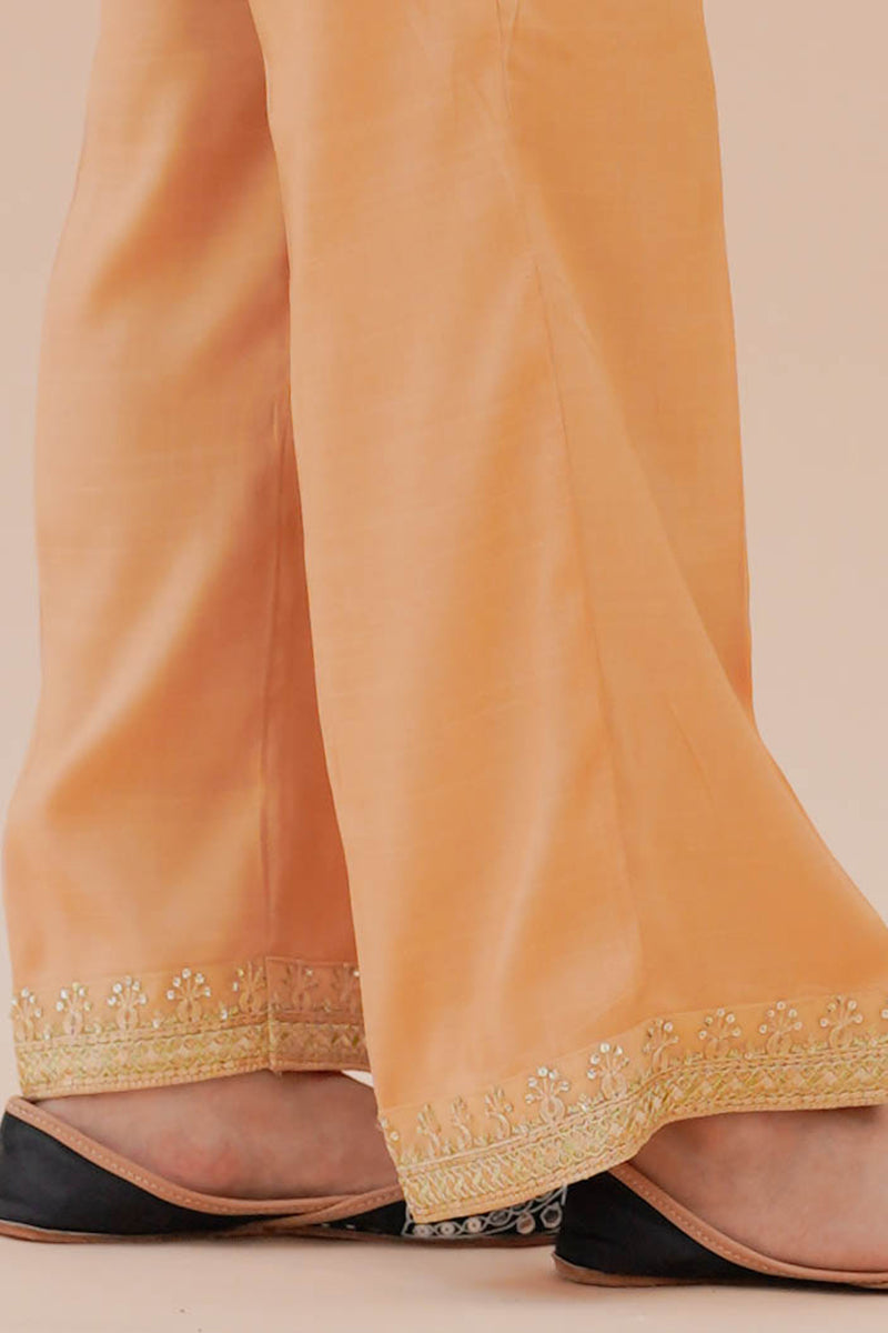 STRAIGHT RAW SILK SEQUIN EMBROIDERED PANTS