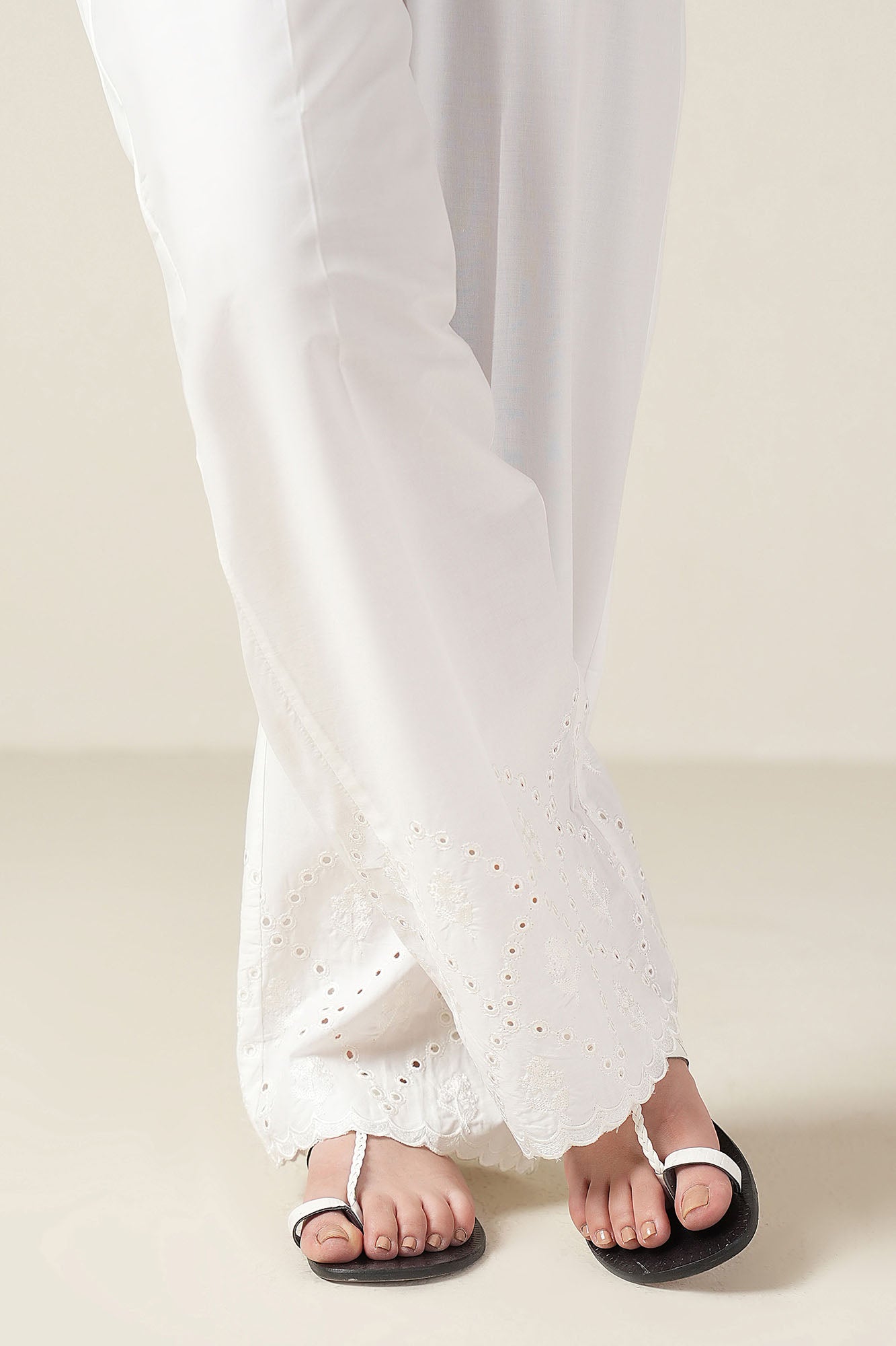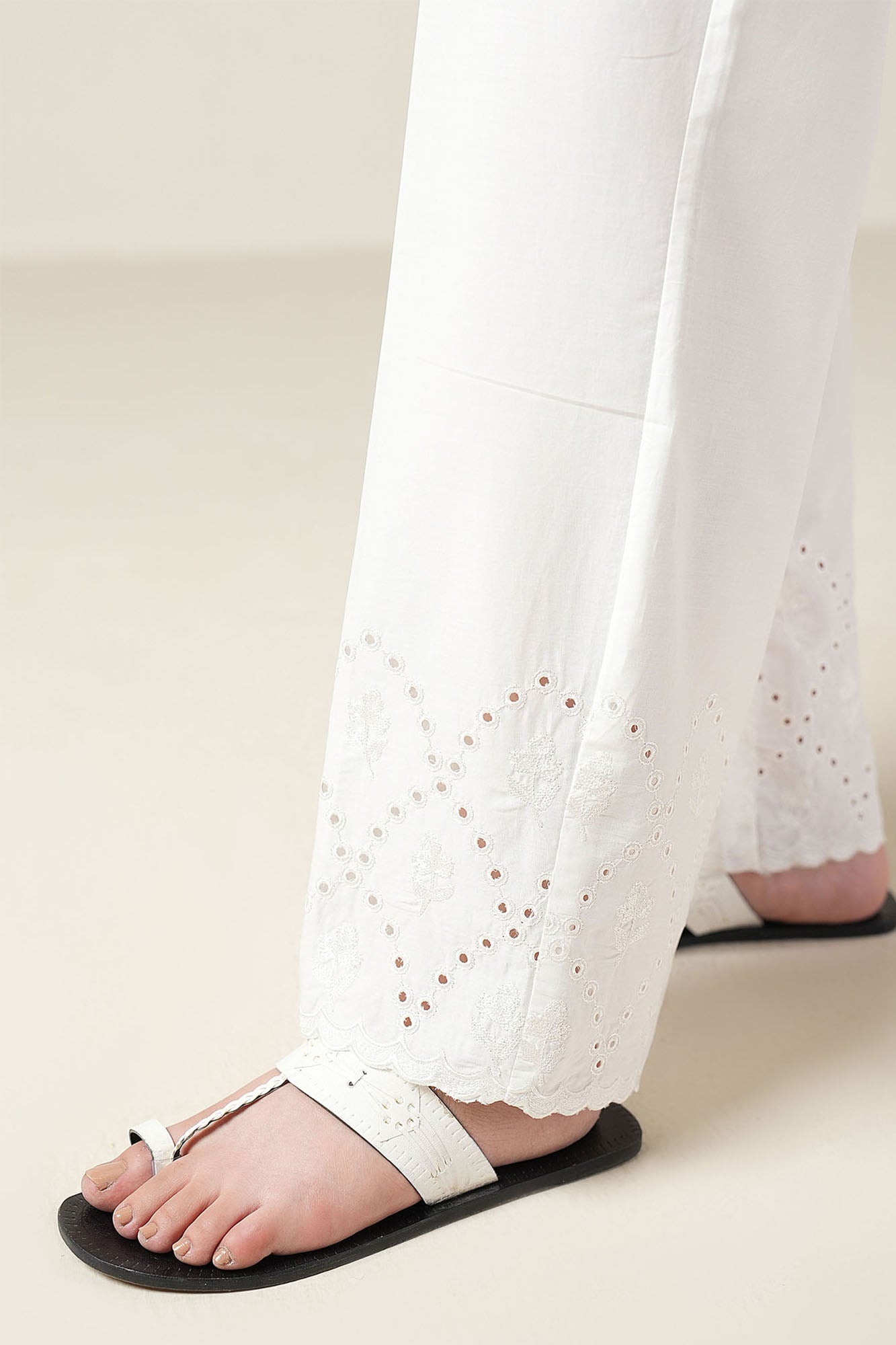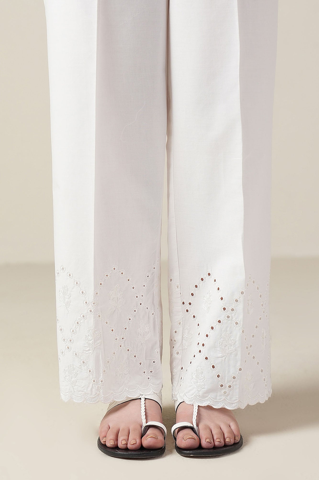 CAMBRIC STRAIGHT PANTS EMBROIDERED TROUSER WITH SCALOP FINISHING