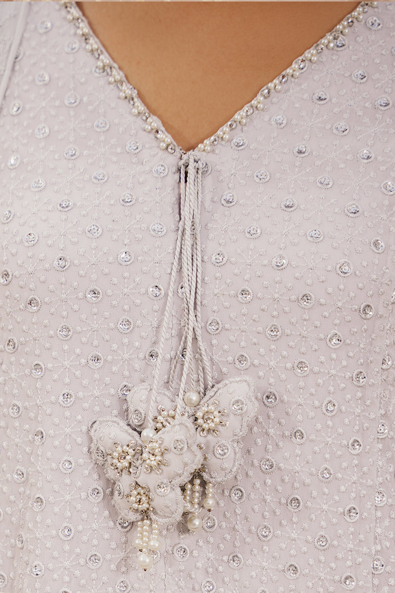 - Expertly crafted with chiffon fabric, the LUNAR ROCK-2 PIECE features an A-line shirt with embroidered panels for a stylish look. The V-neckline is adorned with intricate embellishments and tassel detailing for added elegance. The sleeves are also embroidered and the set comes with a matching chiffon dupatta, making it a must-have for any fashion-forward wardrobe.