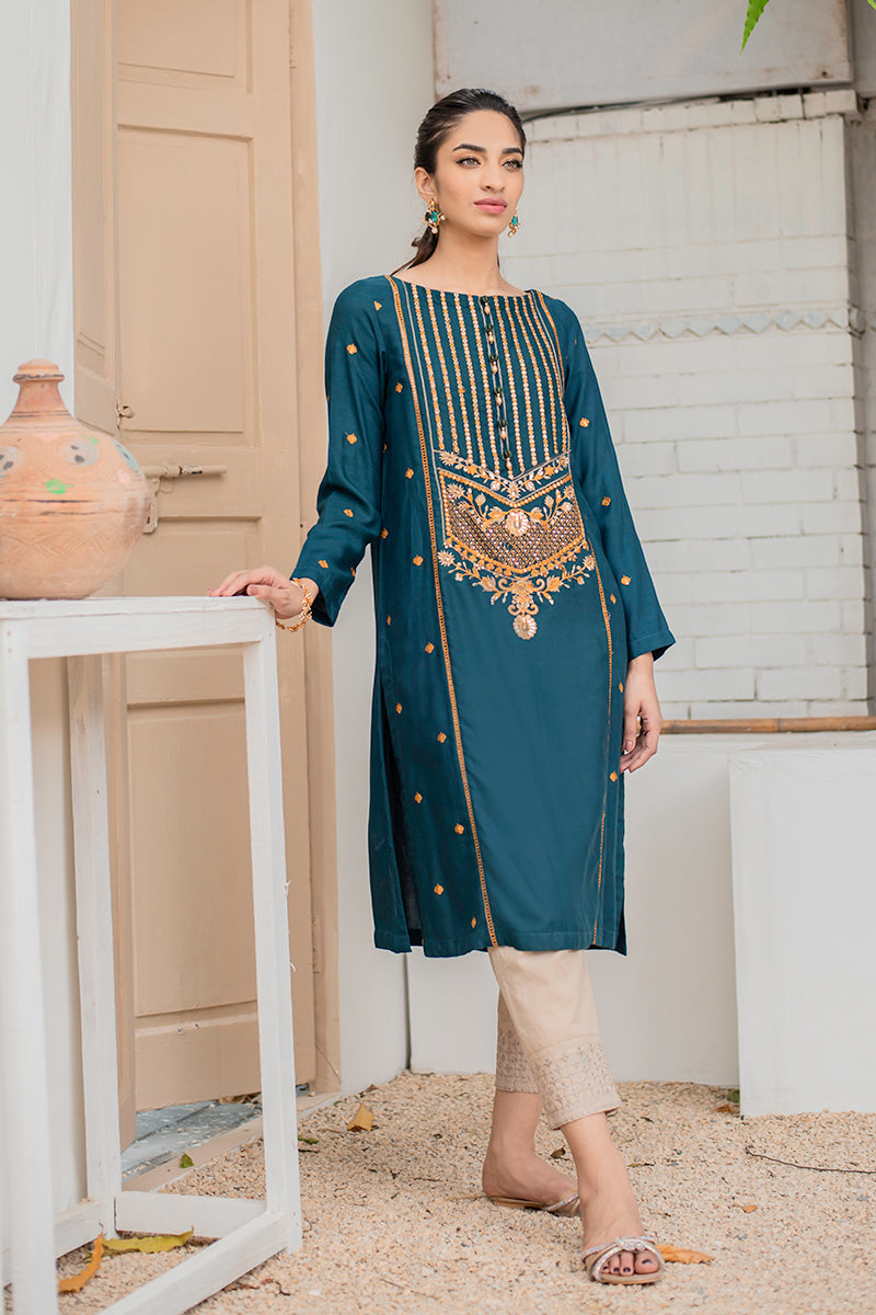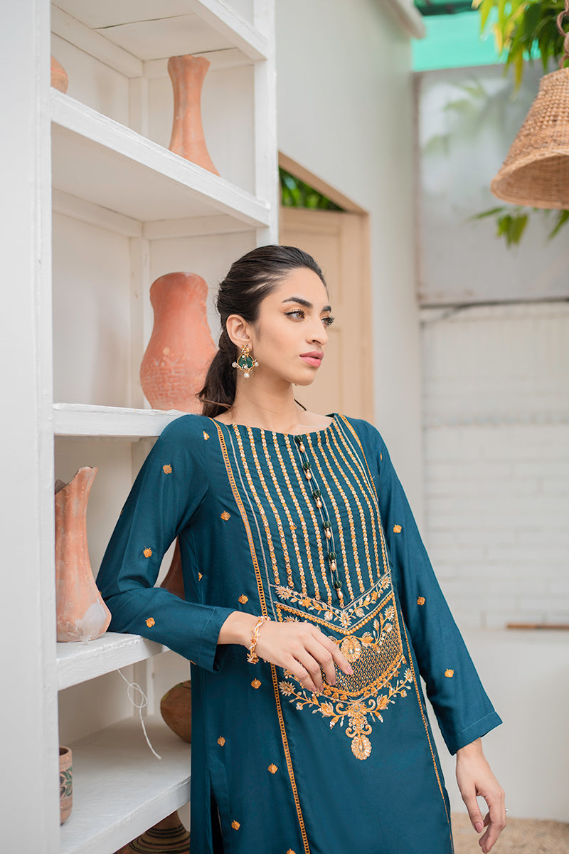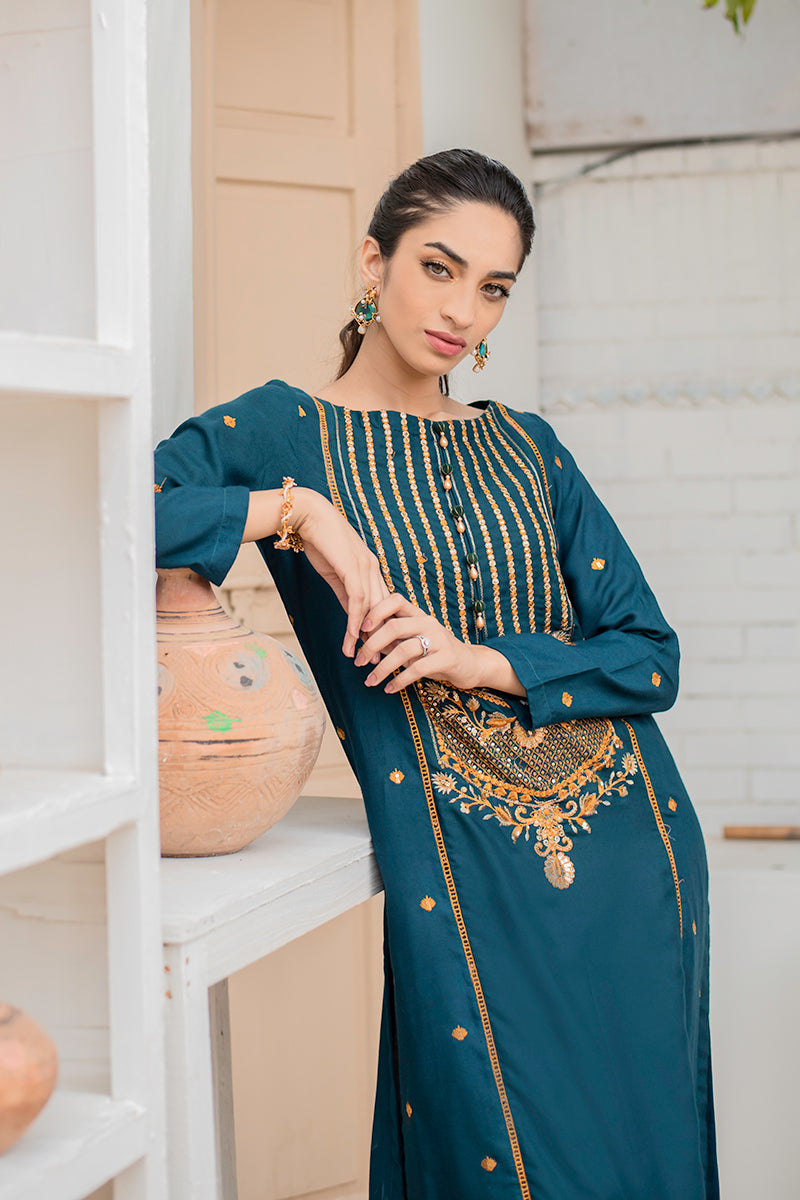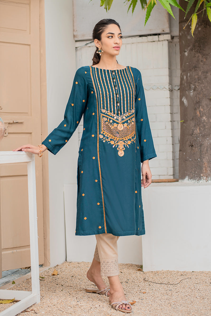 Boat Neck, Full Sleeves, Embroidered Front and Sleeves, Embellishment on Neckline