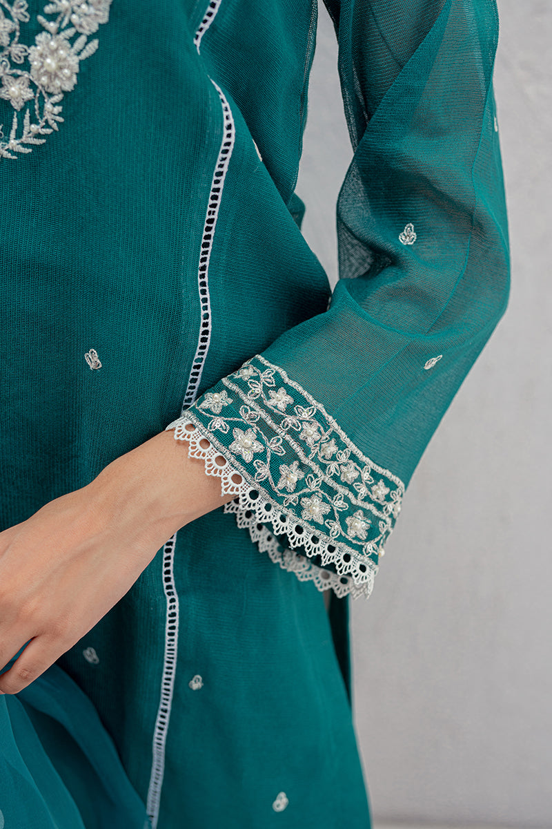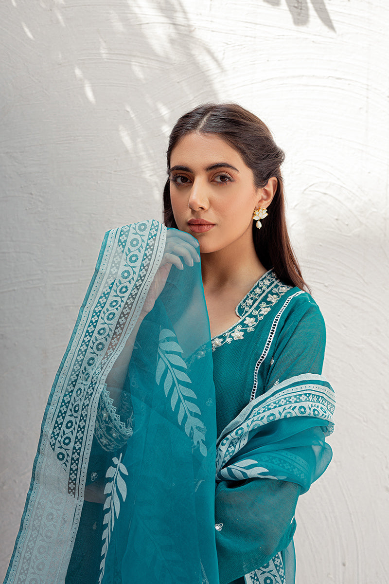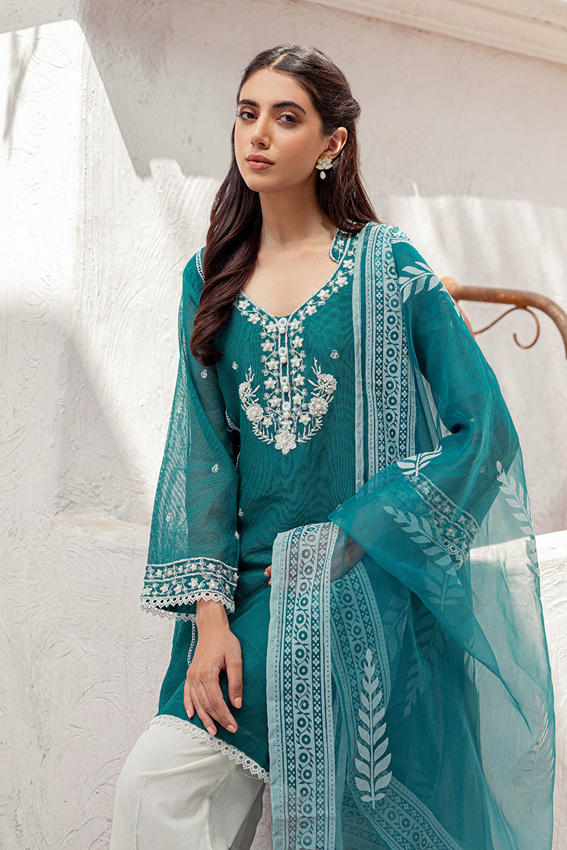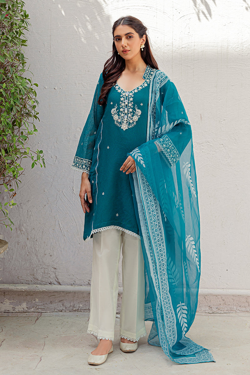 - Upgrade your style in this sublime cerulean blue embroidered kurta paired with a paste printed organza dupatta. Style your hair in a half updo to take the look up a notch.