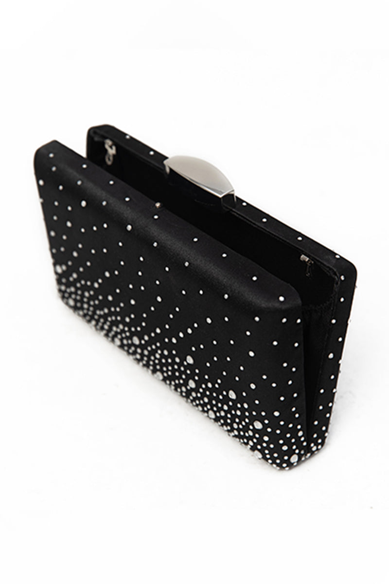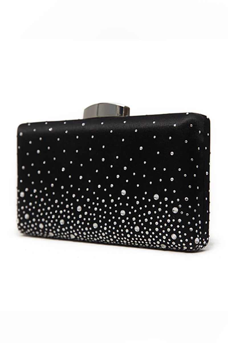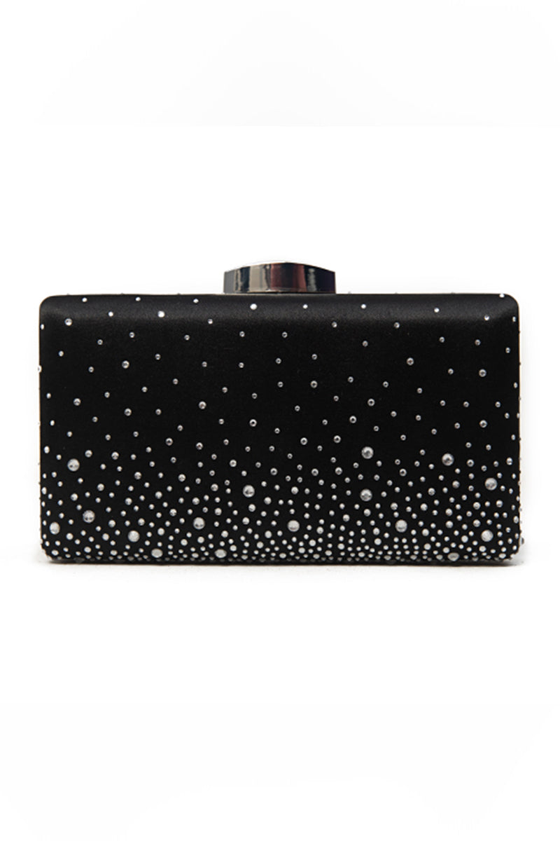 Embellished Clutch bag, decorated with crystals and finished with a detachable chain strap, allowing you to carry in-hand or wear on the shoulder.Color: Black