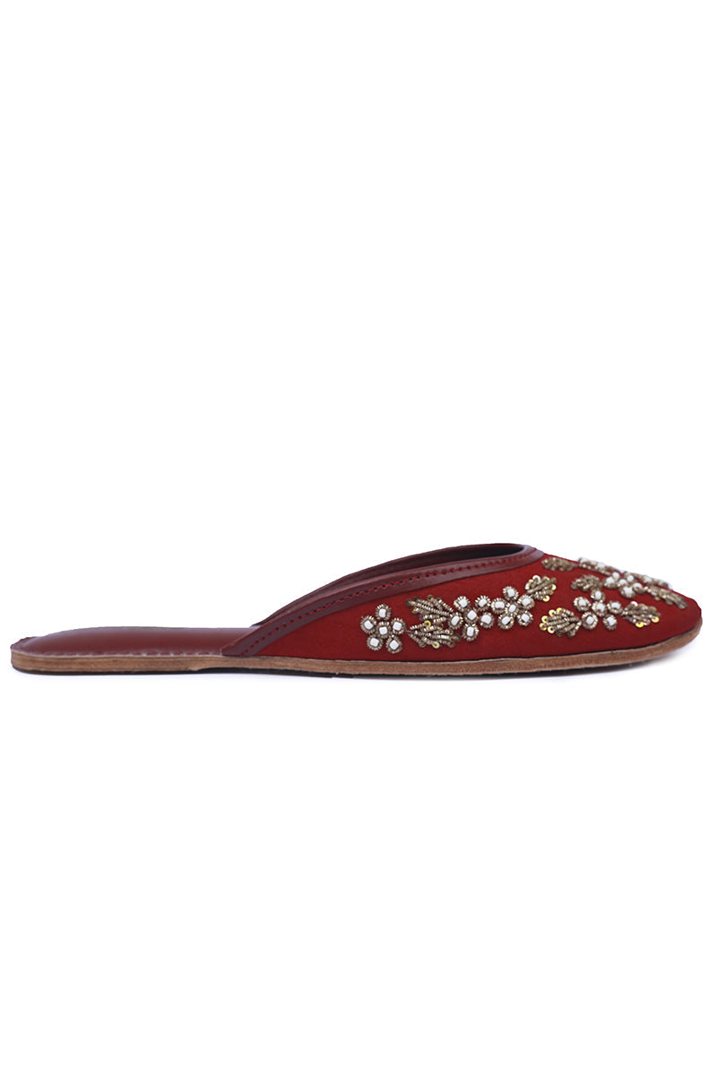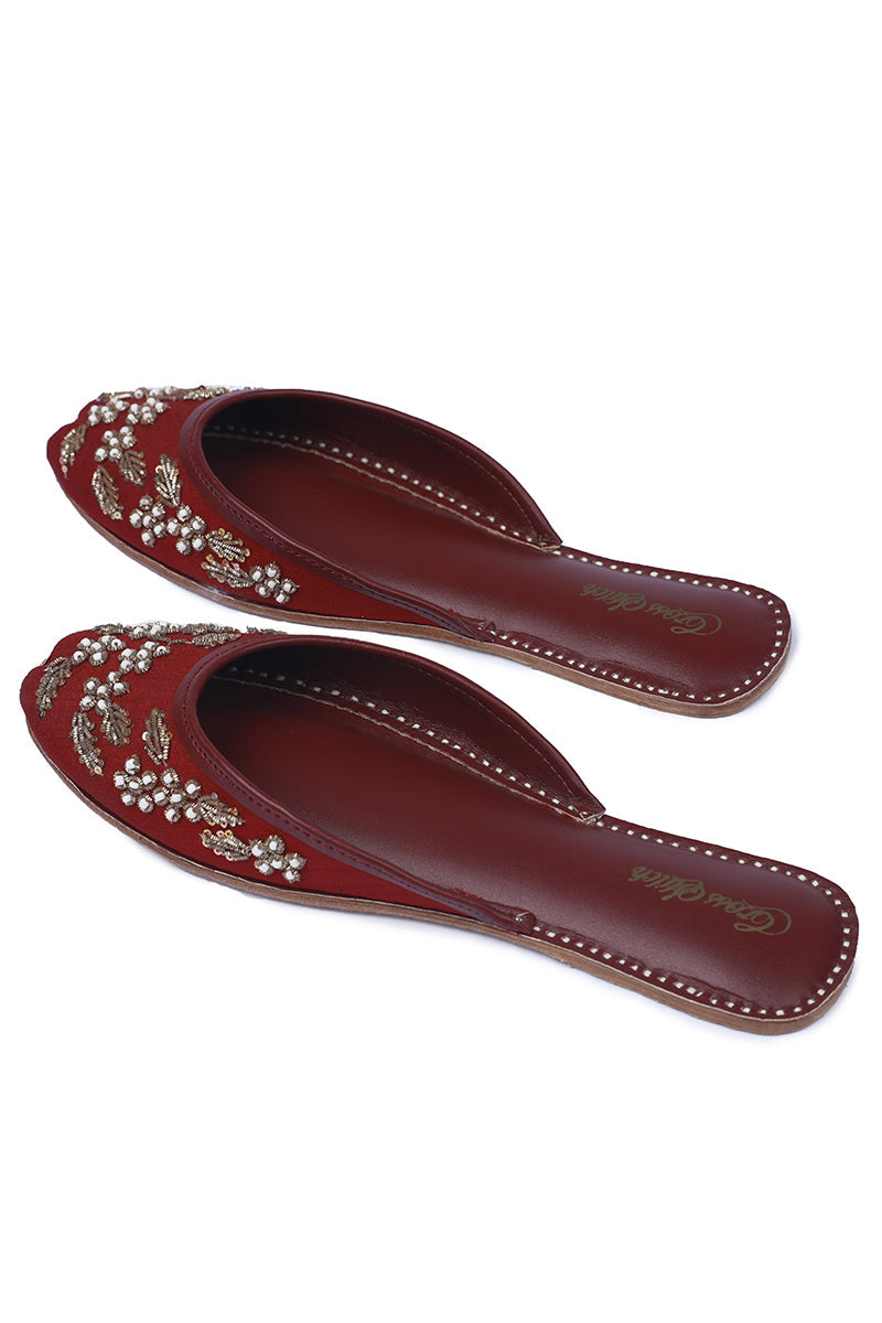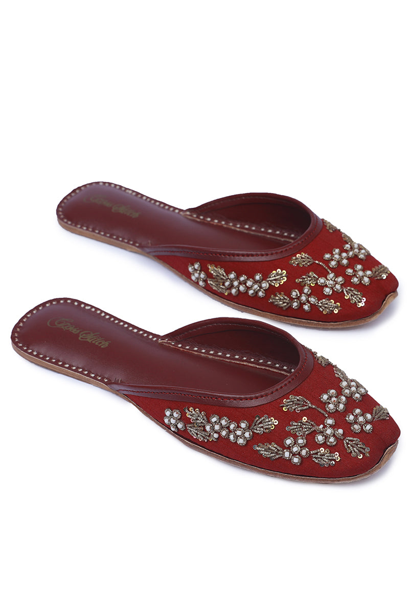 The most desirable yet comfortable pair khussas you'll come across! Marie comes in an elegant maroon color with timeless dabka work.
