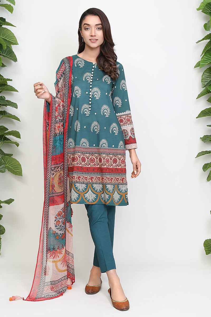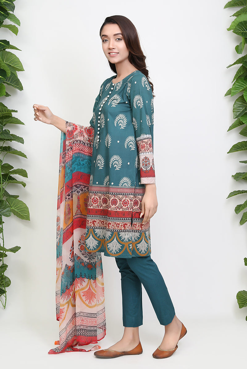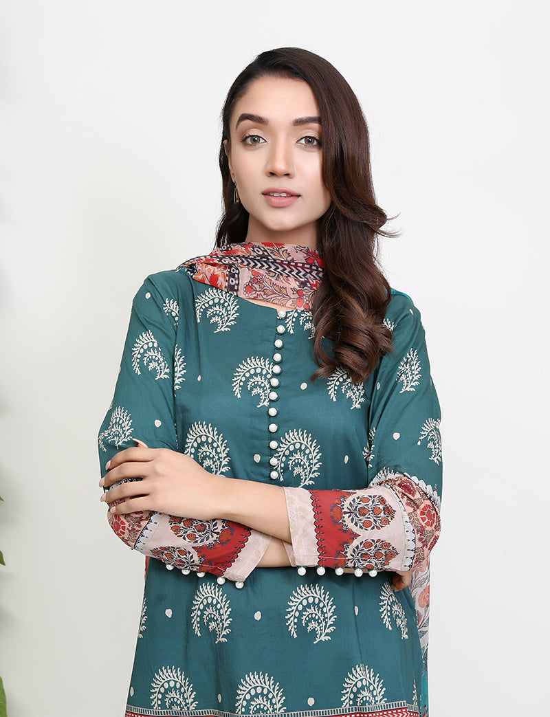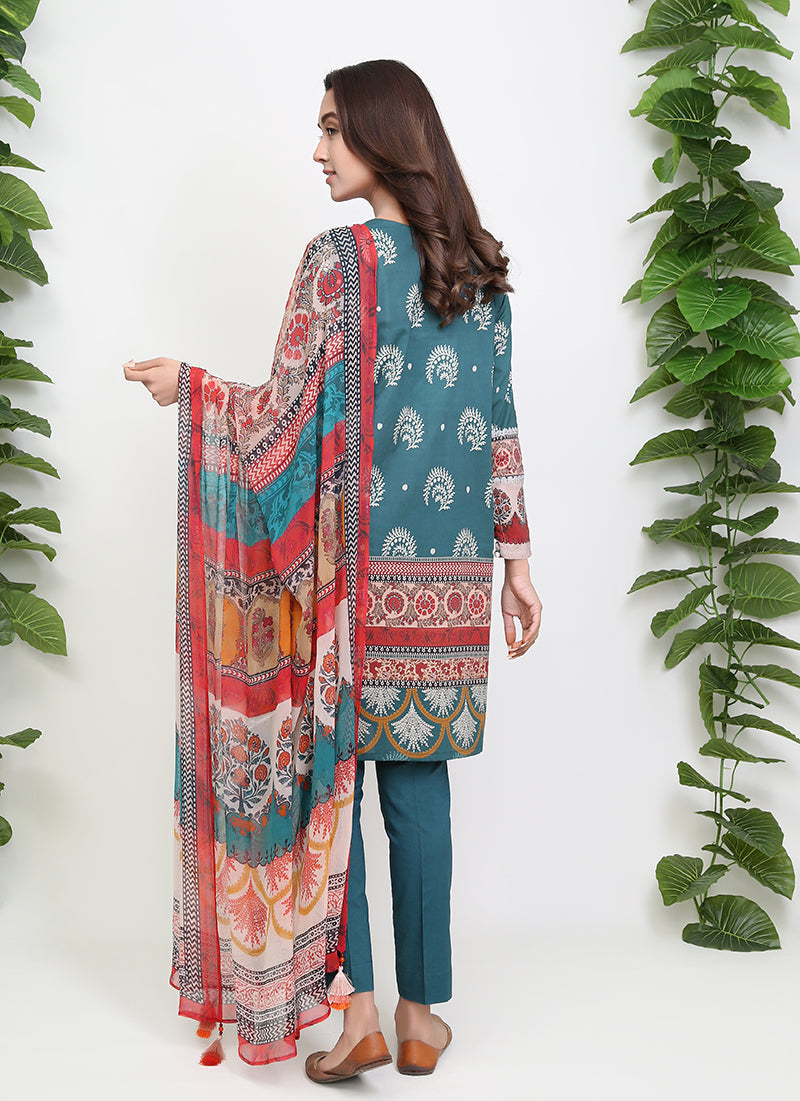 DIGITAL PRINTED LAWN SHIRT, DYED CAMBRIC TROUSER AND CHIFFON DUPATTA