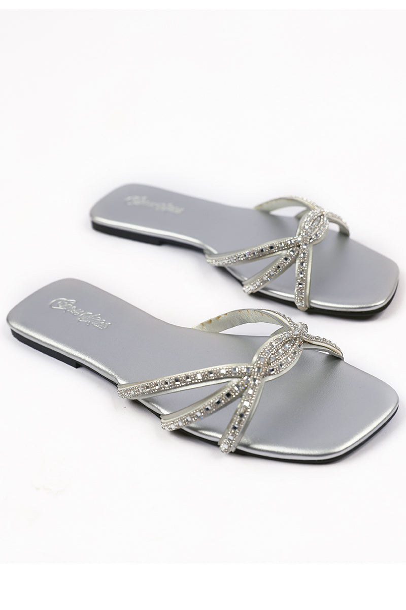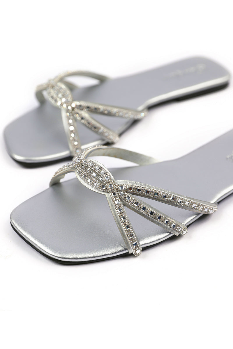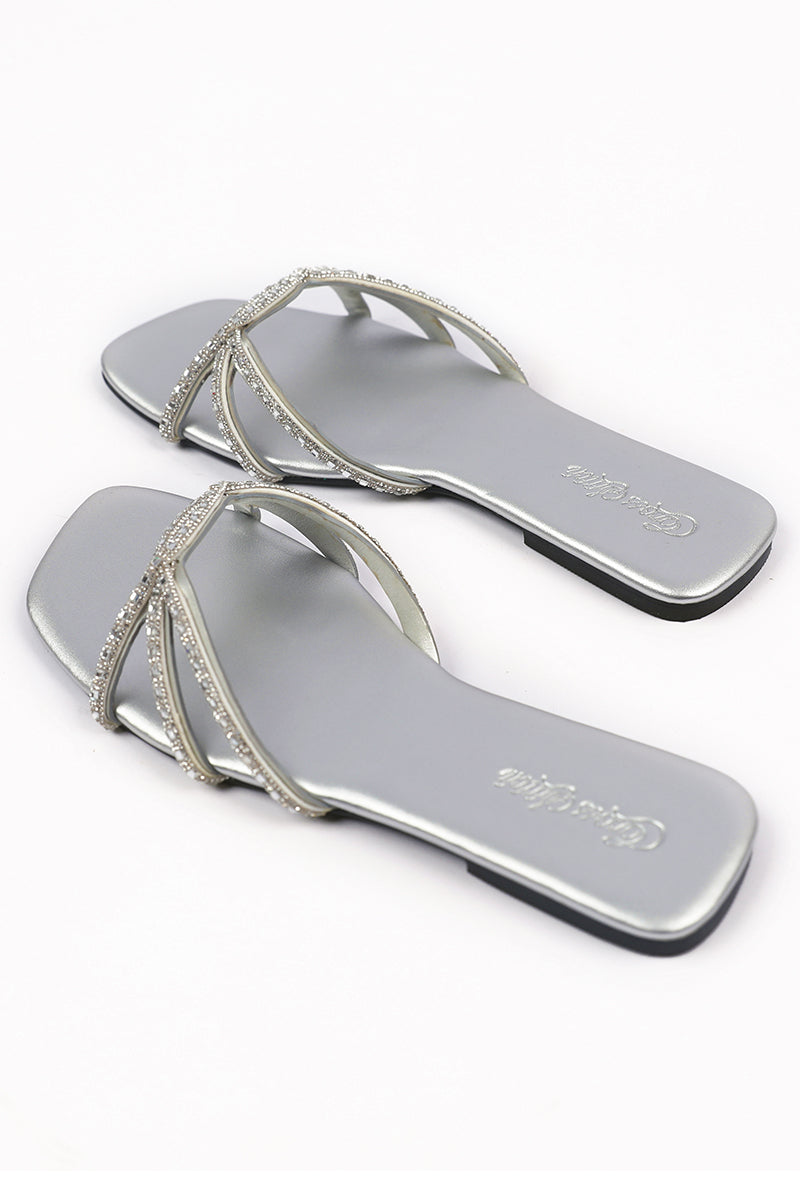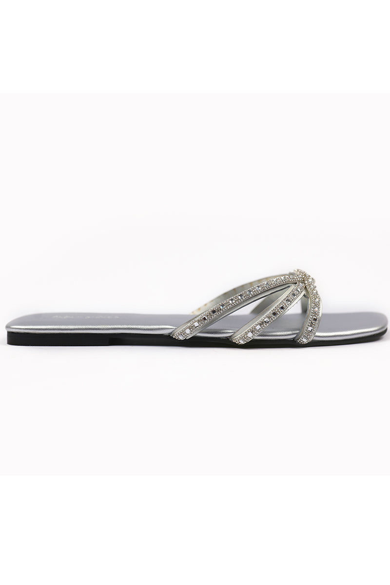 - Silver interlaced straps adorned with mirrors and silver studs lifting up your solid daily wear.
