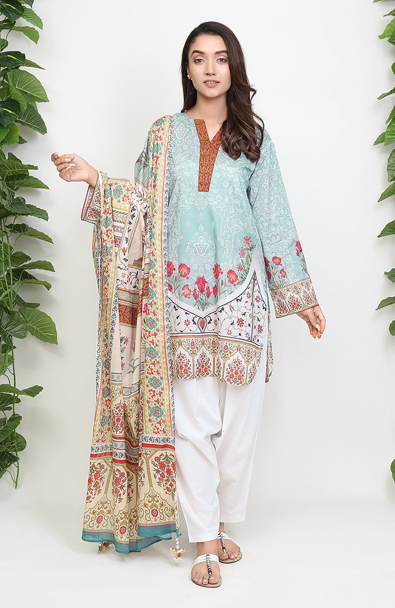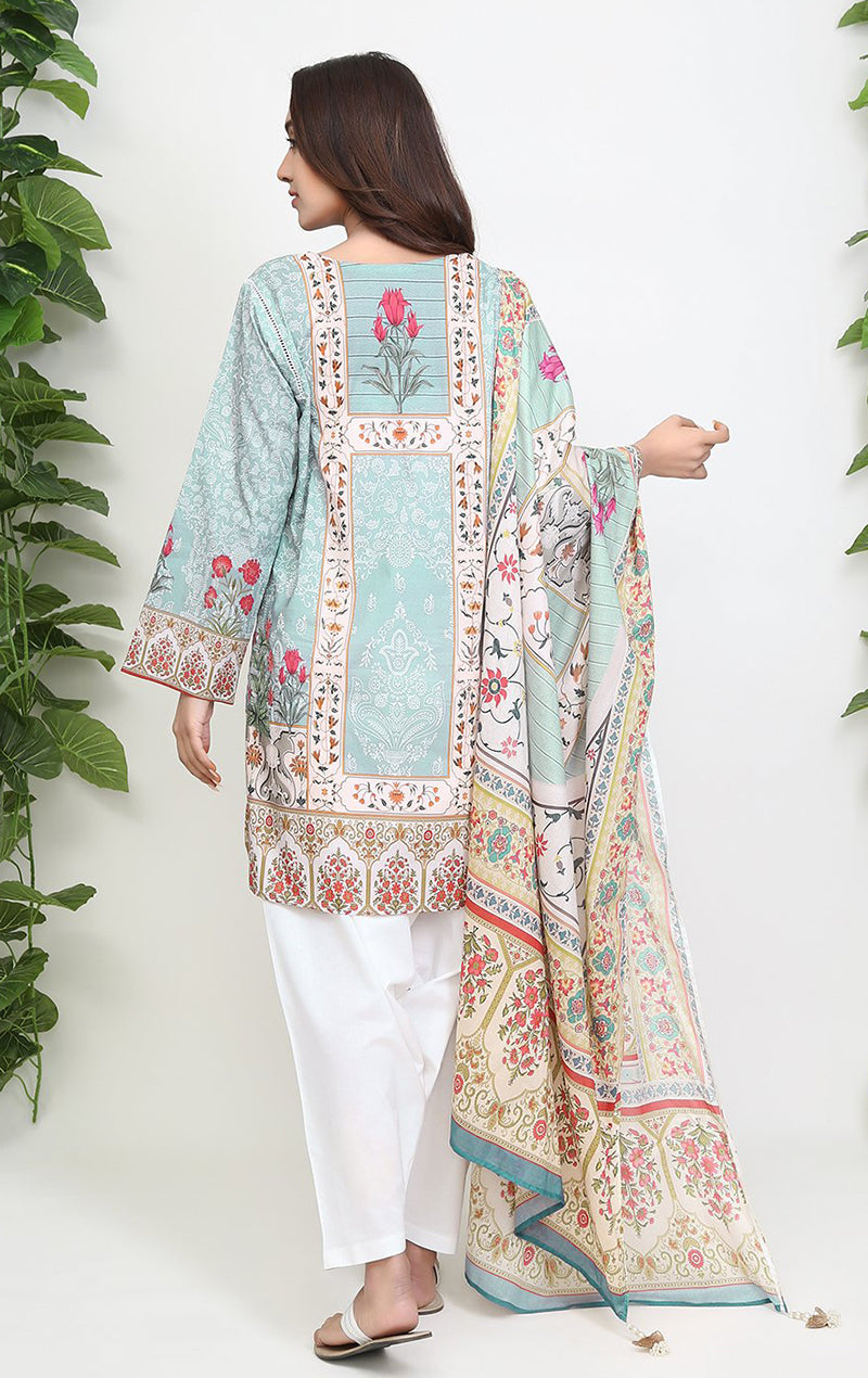 DIGITAL PRINTED LAWN SHIRT, DYED CAMBRIC TROUSER AND LAWN DUPATTA
