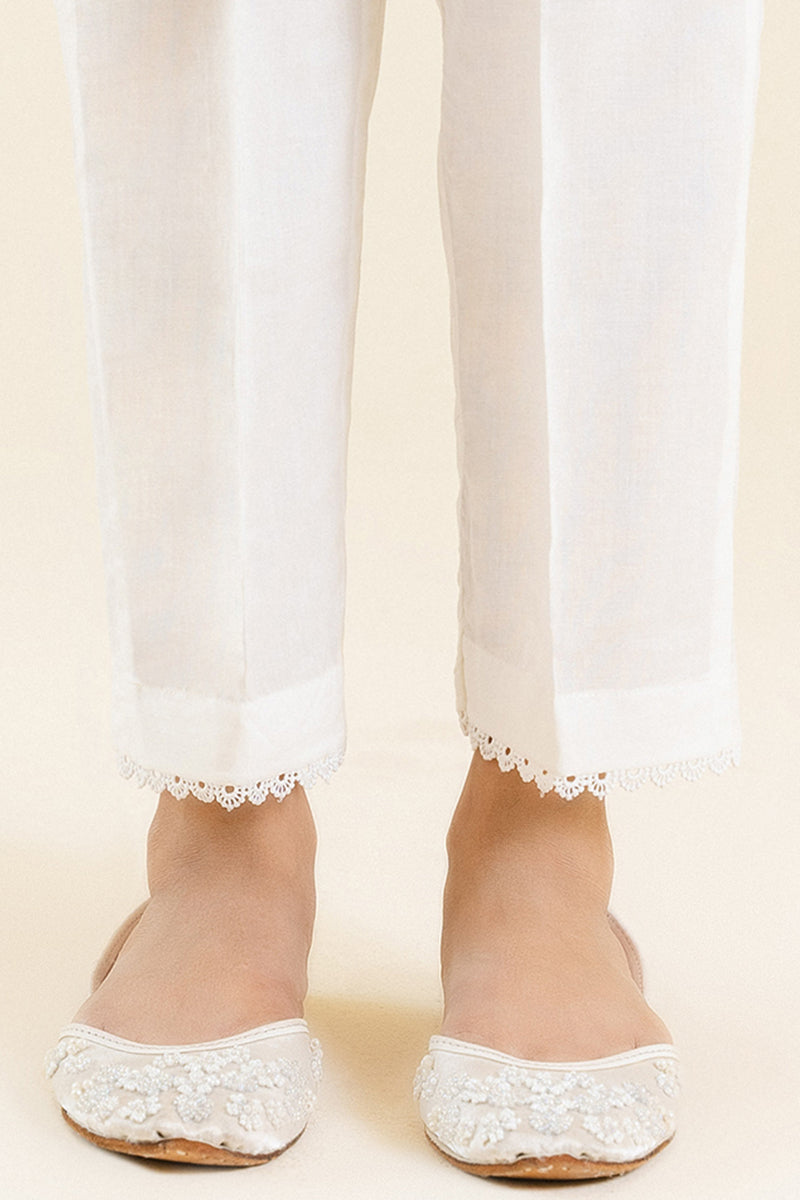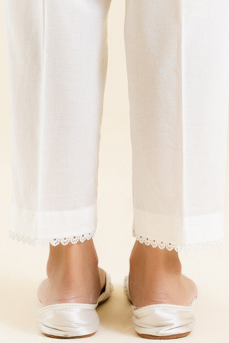 STRAIGHT FITTED CAMBRIC PANTS WITH LACE FINISH