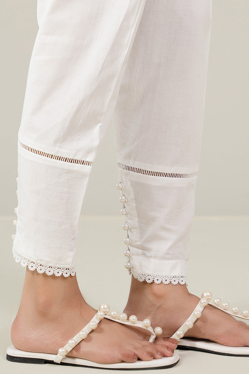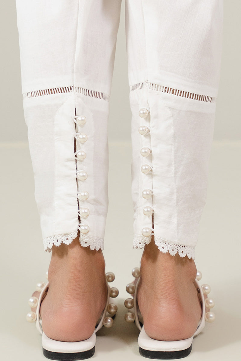 CAMBRIC TAPERED SHALWAR WITH LACE AND LOOP BUTTON OPENING