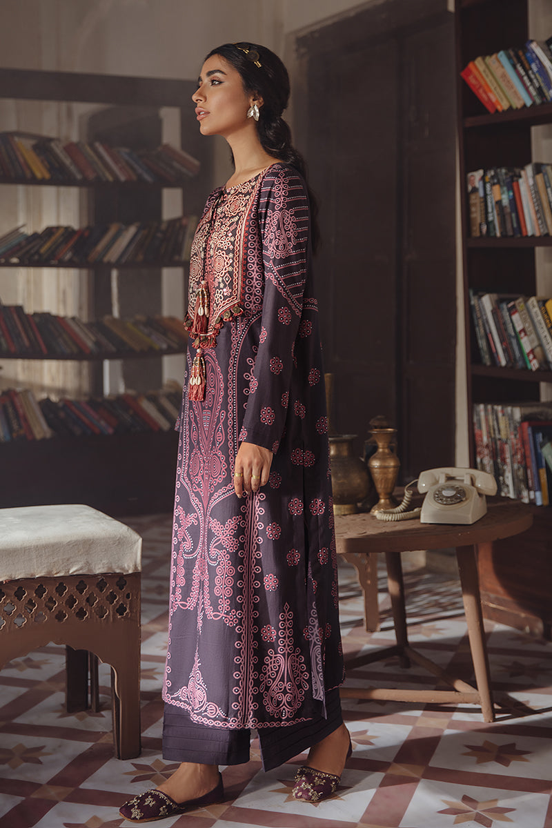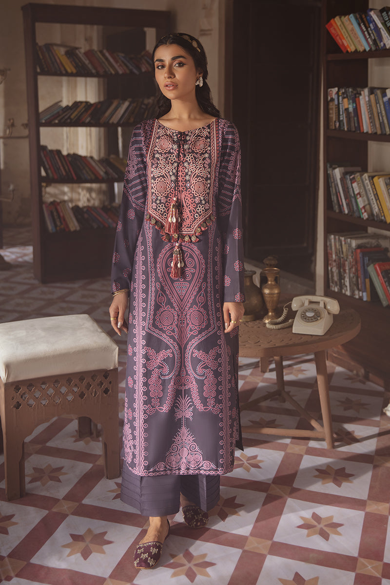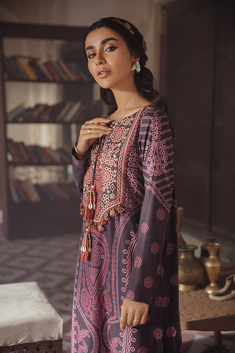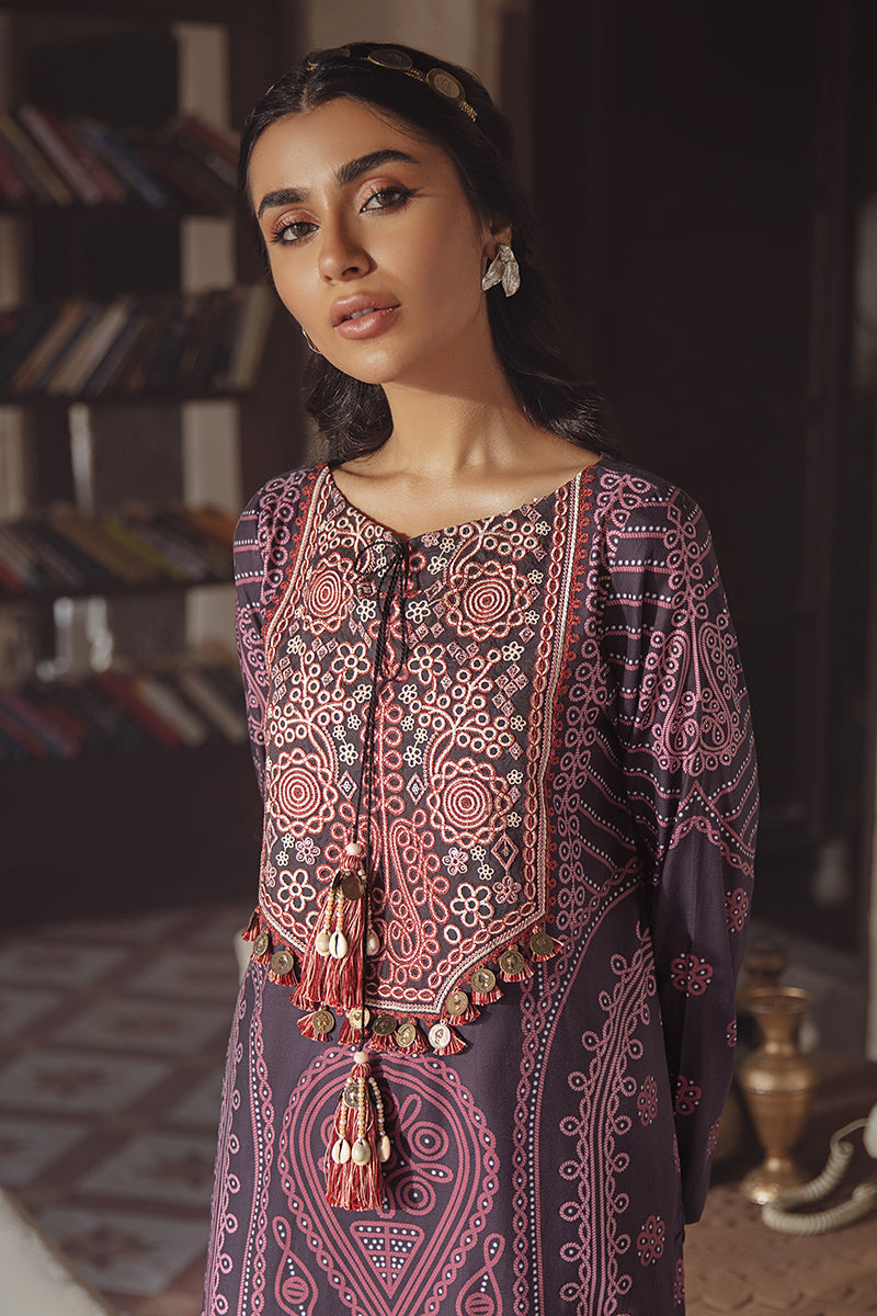 THIS COTTON SATIN TWO-PIECE, DIGITALLY PRINTED TO AN EYE-CATCHING PATTERN WITH PURPLE AND PINK DUO HUES, IS PERFECT FOR YOUR DAILY WEAR NEEDS! NOT TO FORGET, IT FEATURES AN EMBROIDERED NECKLINE TOO!