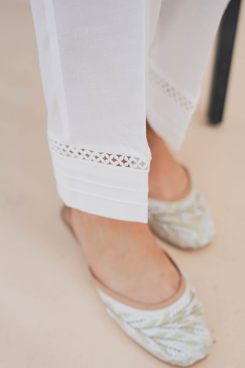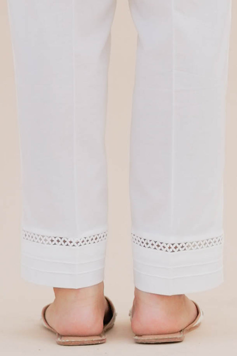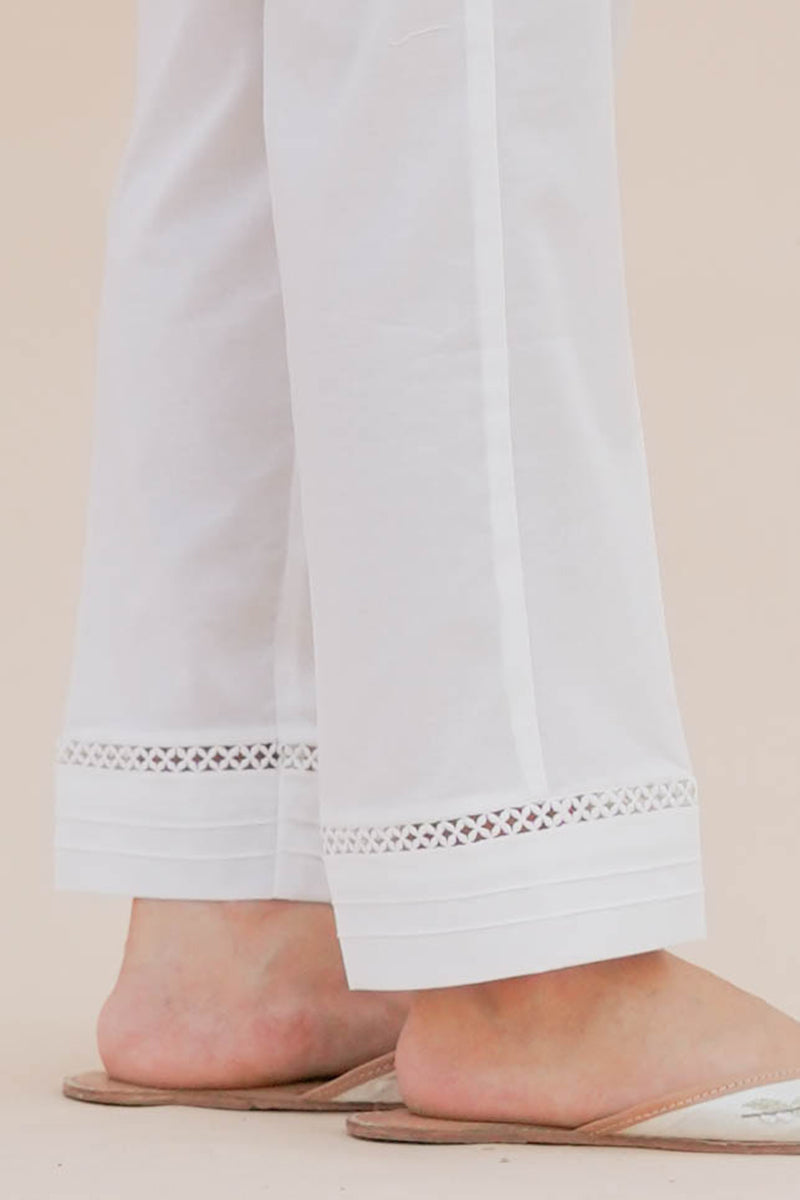 STRAIGHT FITTED CAMBRIC PANTS WITH LACE FINISH