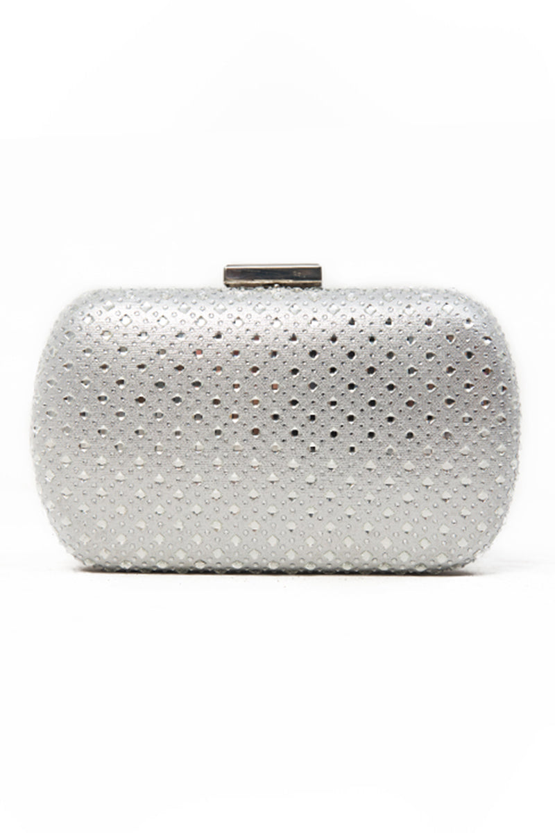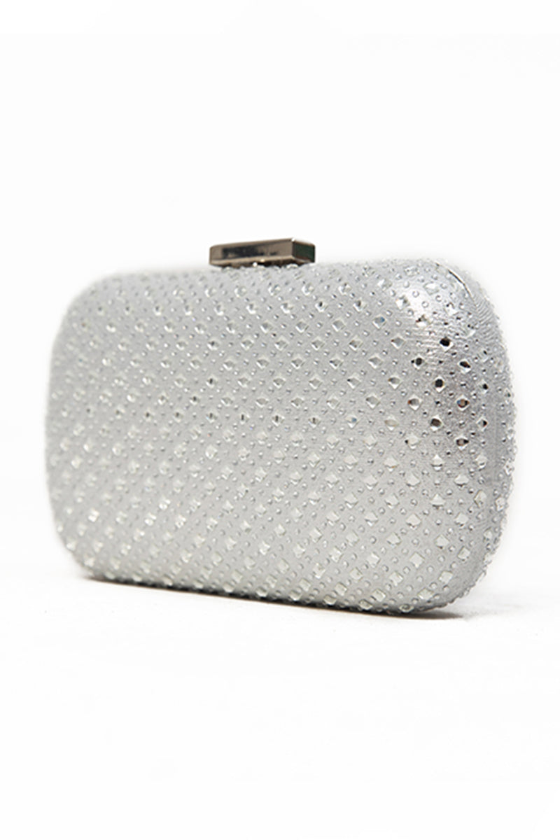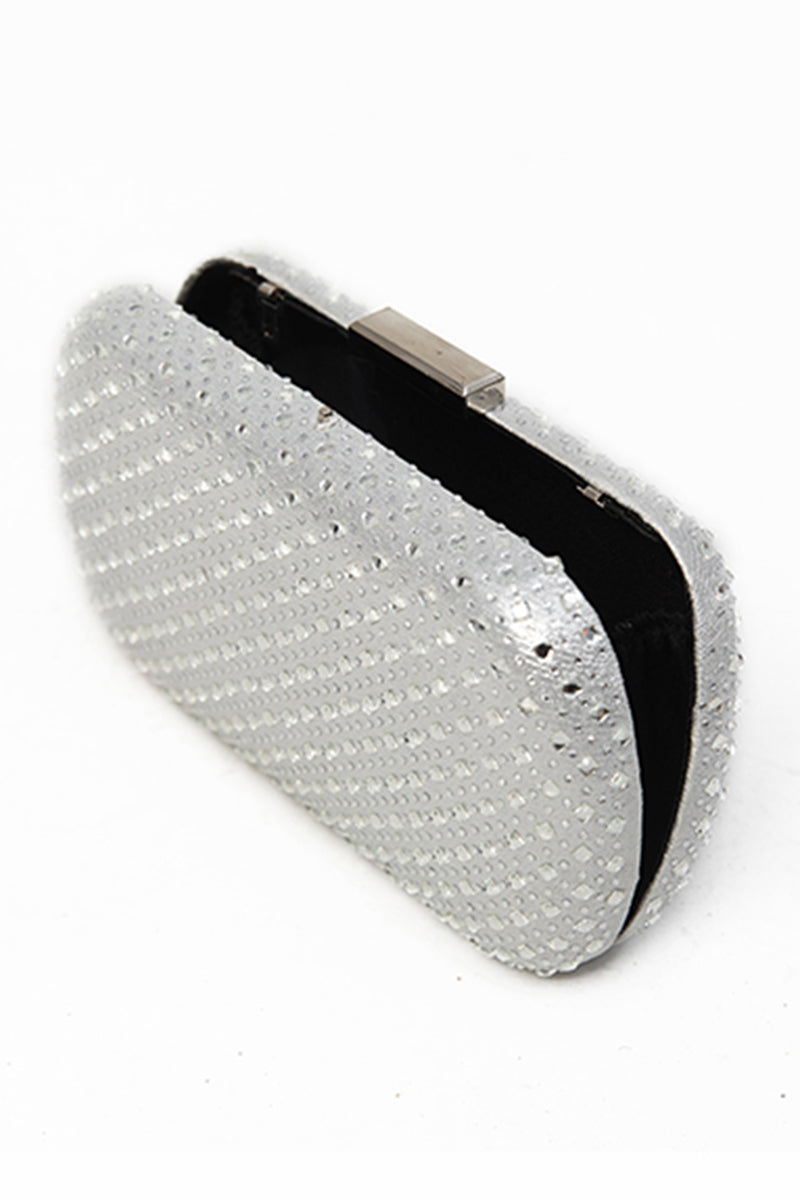 Embellished clutch bag is adorned with layers of crystals and is also topped with a metal claspColor: Silver