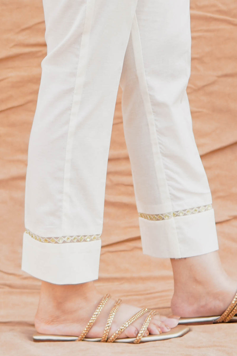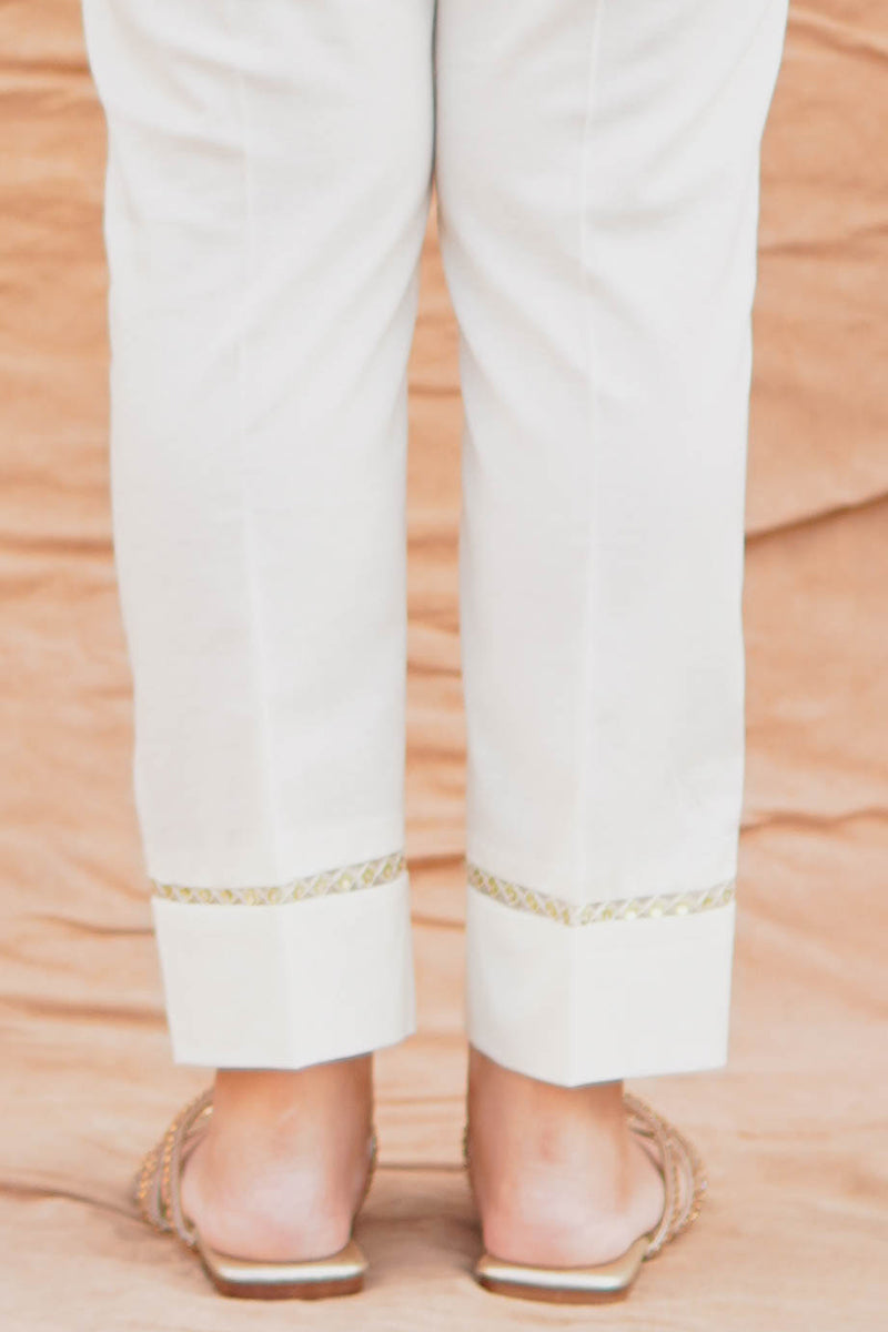 STYLE STRAIGHT FITTED CAMBRIC PANTS WITH TILLA EMBROIDERY