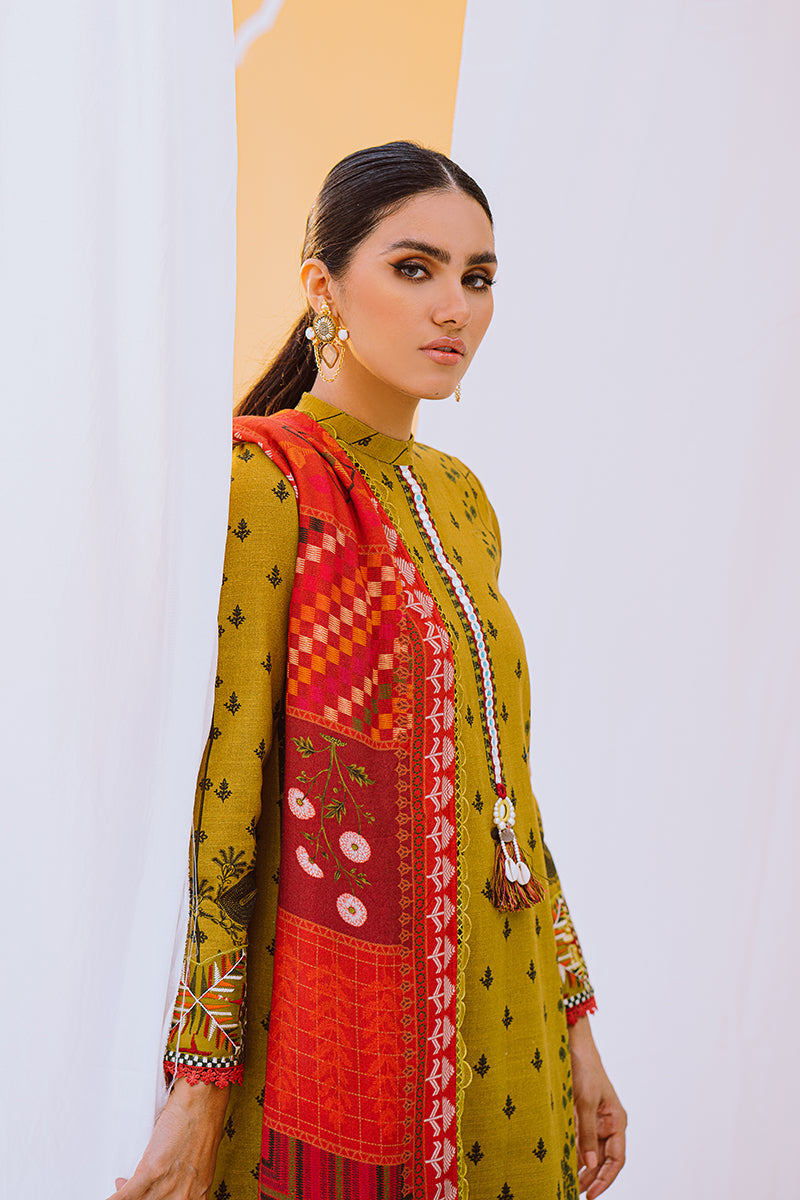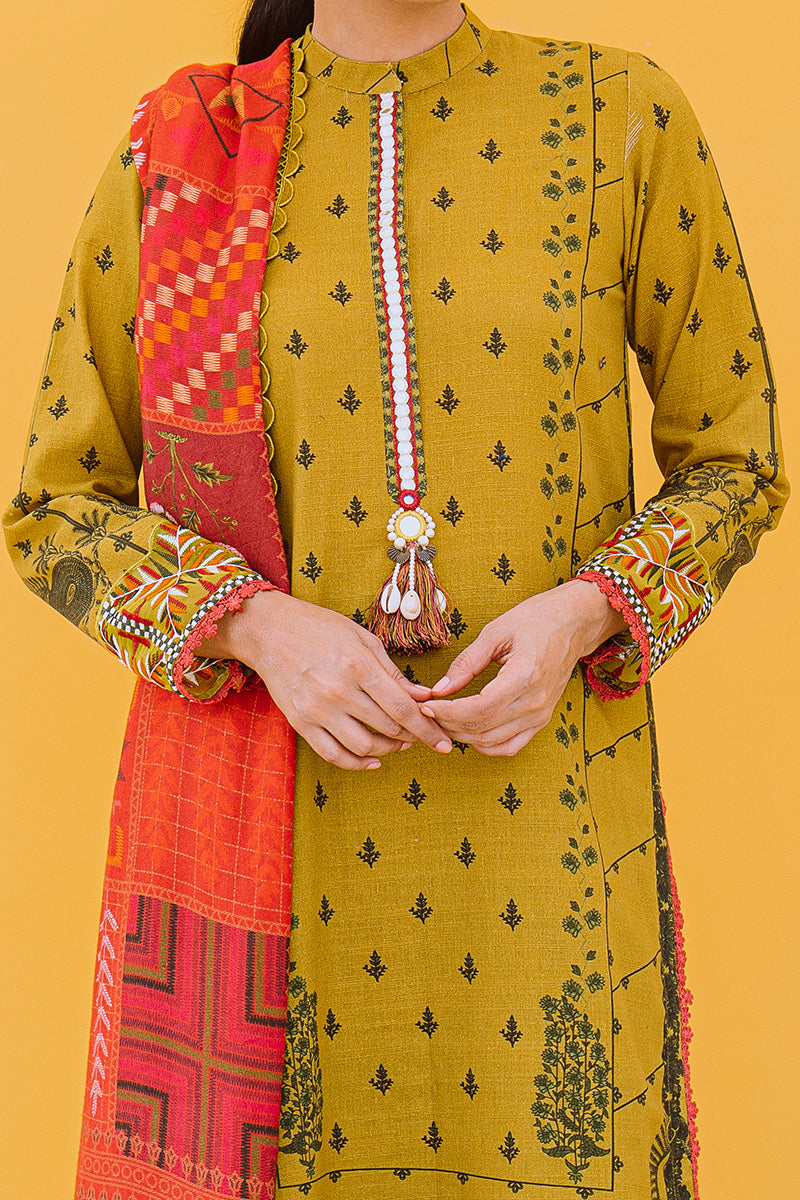 DIGITAL PRINTED KHADDAR SHIRT,1 EMBROIDERED NECKLINE,40 EMBROIDERED PATTI FOR SHIRT