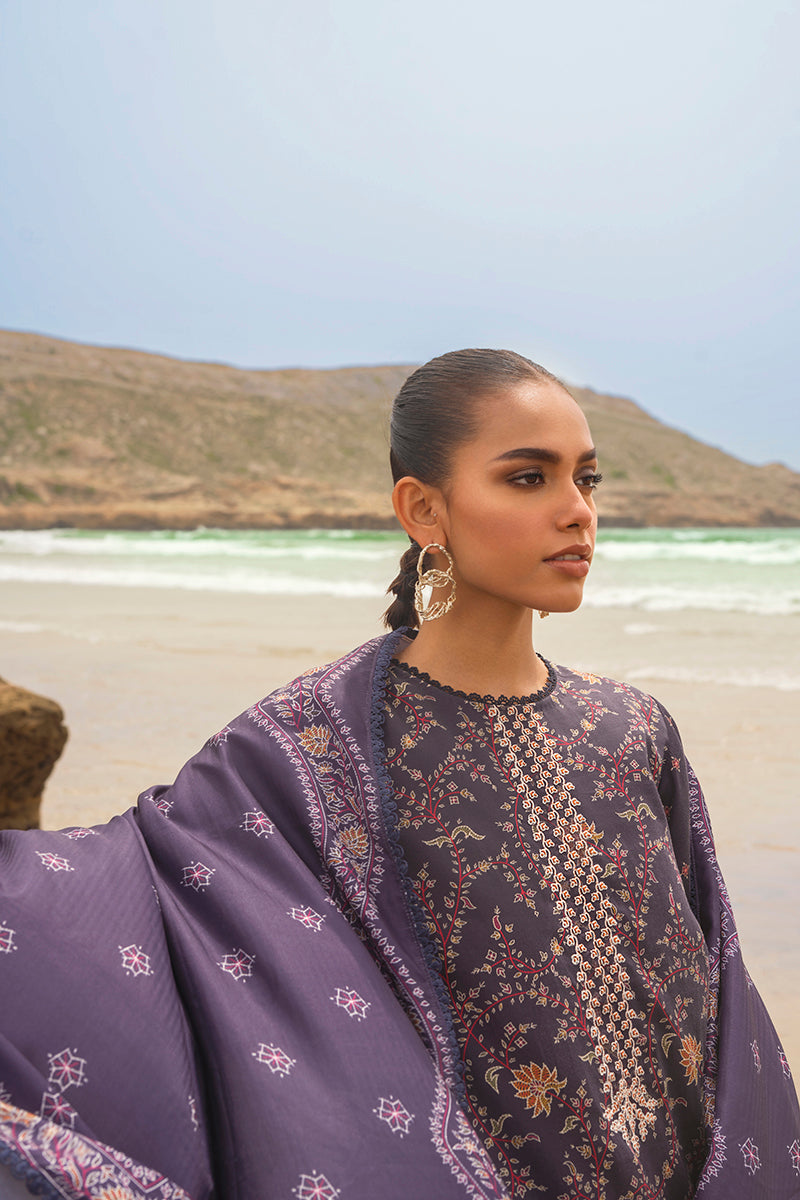 Our PASHMINA BLEND-3PC SATIN PRINTED SUIT combines the luxurious look of cotton satin with intricate embroidery and digital printing. The 100% cotton satin shirt features a beautiful embroidered neckline, while the dyed cambric trouser and digital printed shawl complete the stunning ensemble. Enhance any wardrobe with this exquisite and contemporary set.