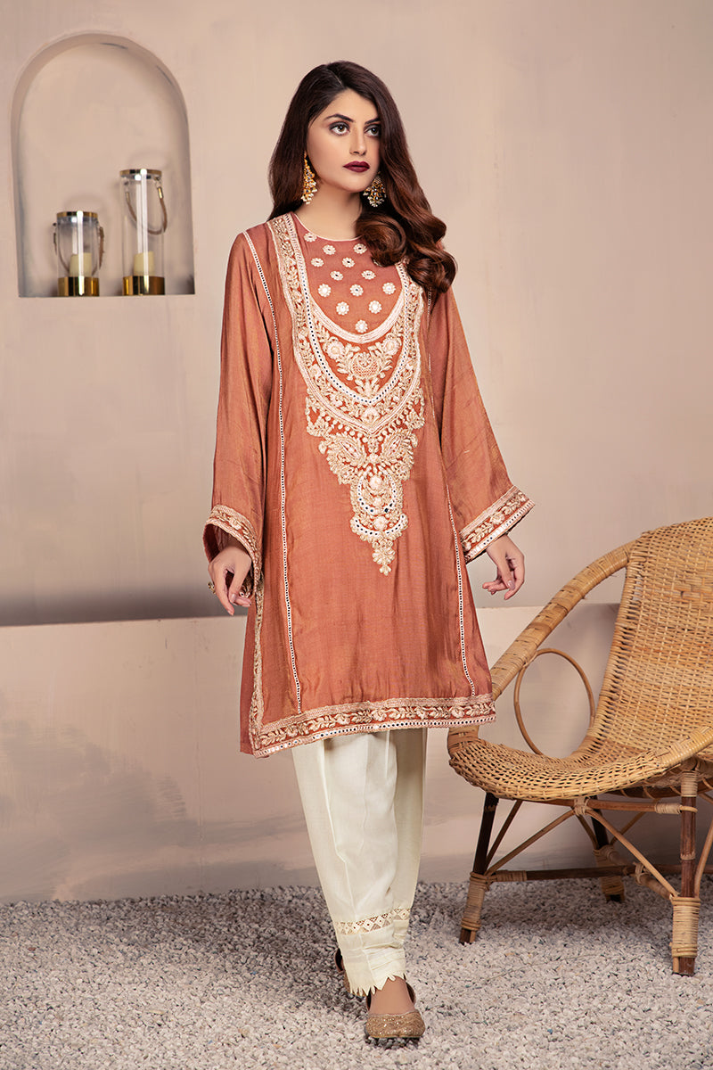 Exude Elegance in this Peach Missouri Kurta Designed with an Aesthetic Attention to Detail. Style with Chunky Jewelry and Trouser from Our Collection For a More Formal Look.