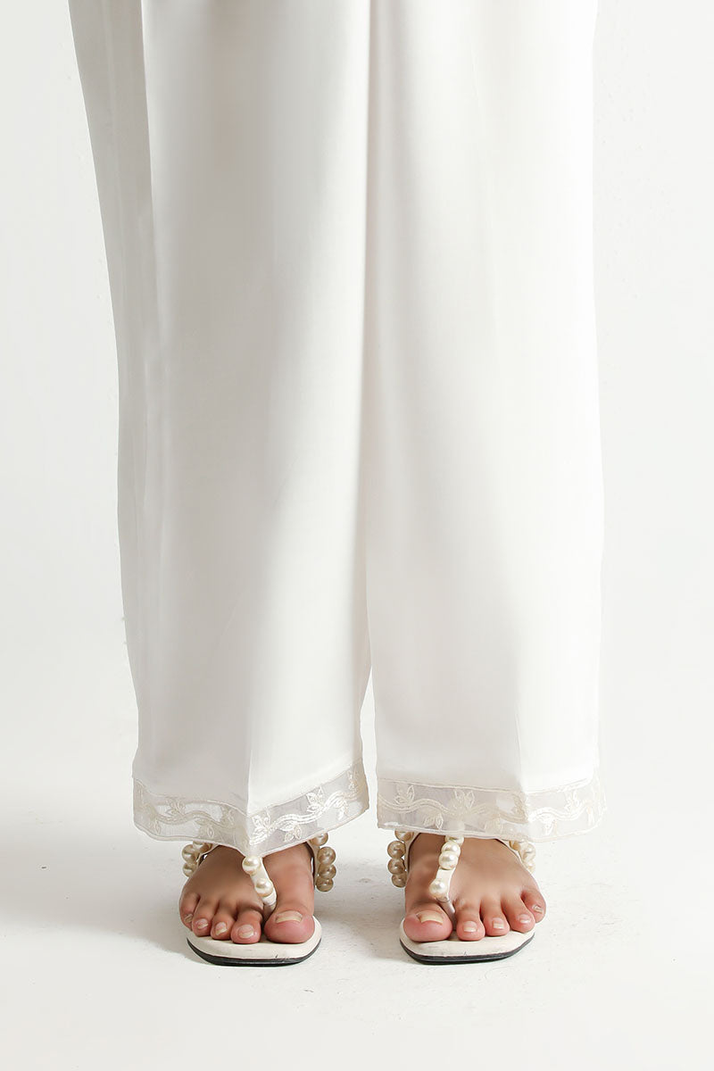 LINEN STRAIGHT PANTS WITH EMBROIDERED PATTI AT HEM