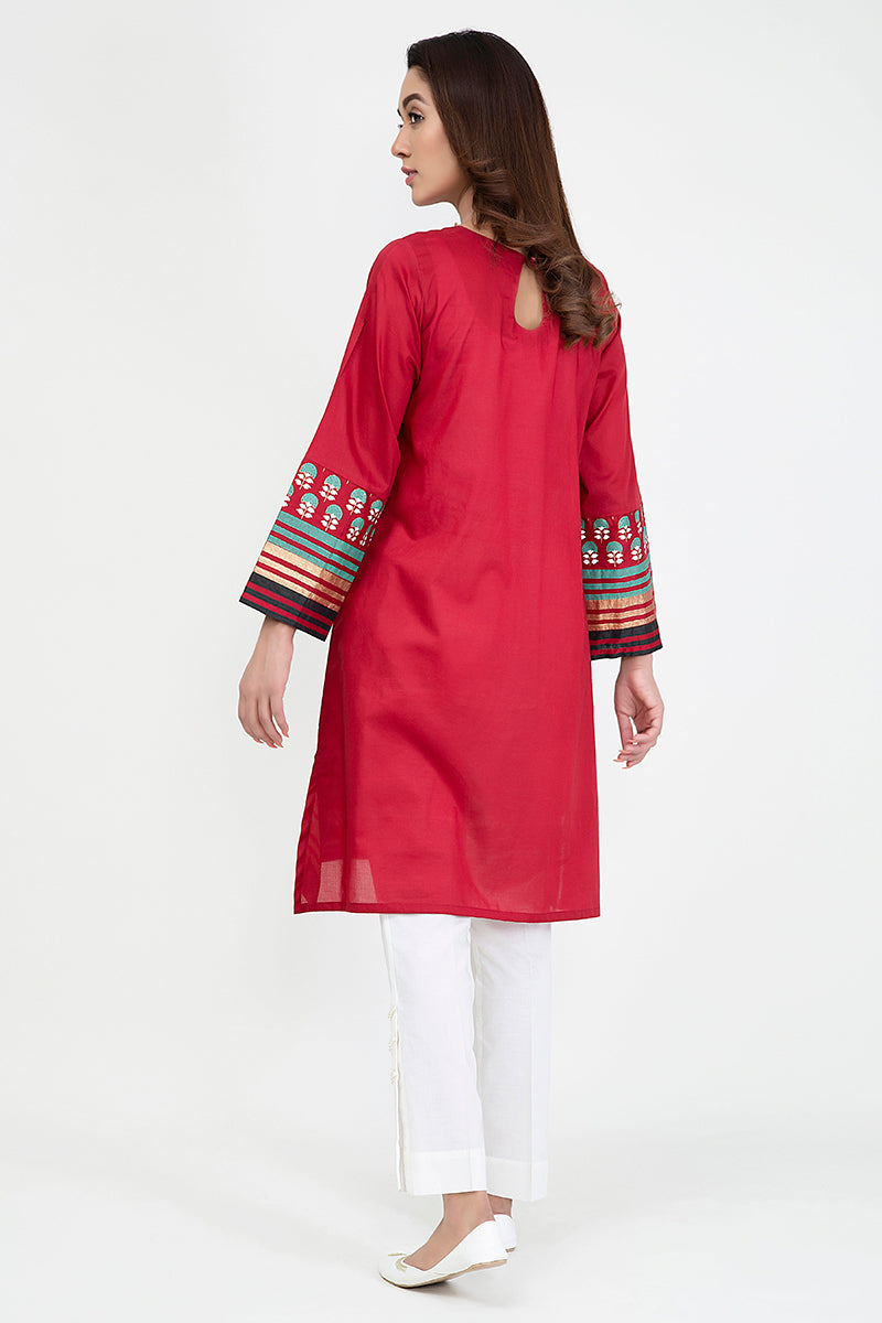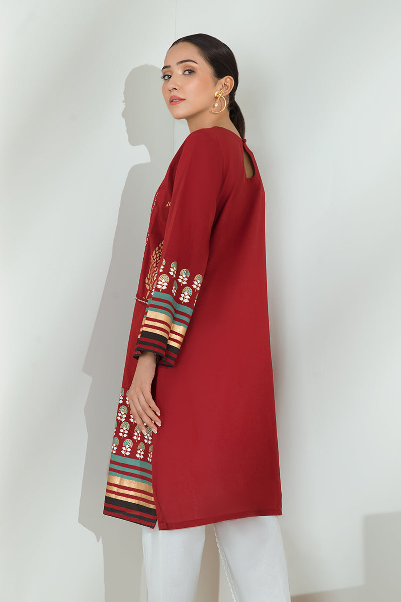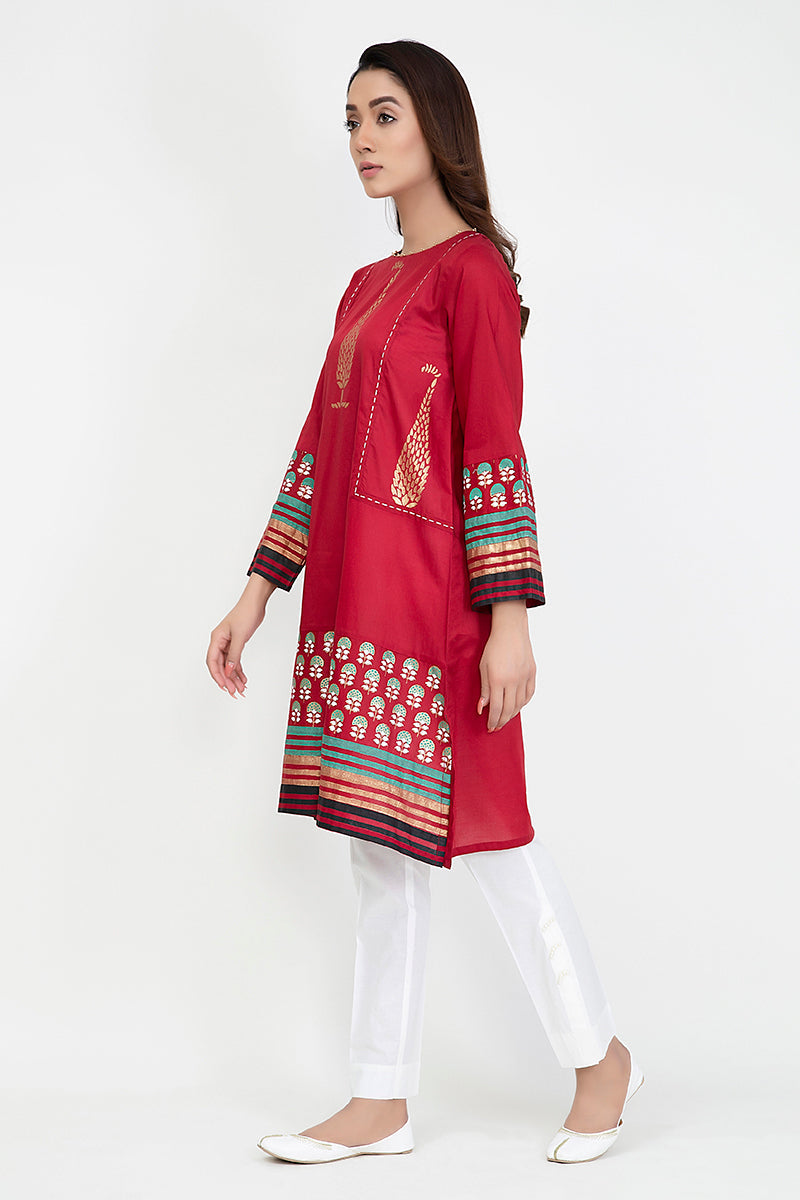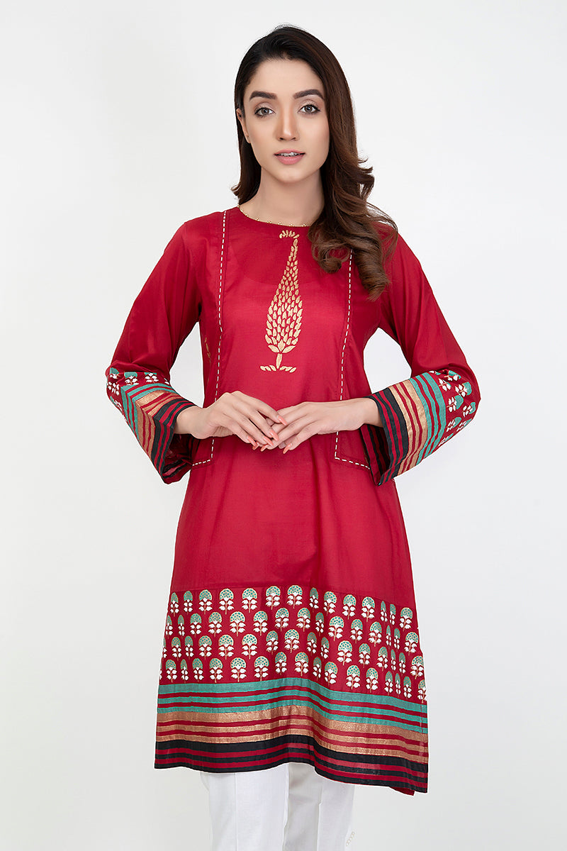 The vivacious block print border of Pine blush is a charming addition to your wardrobe. A tulip shalwar with studs pop up your look for the day.