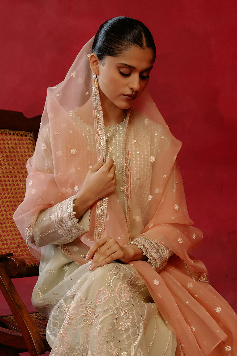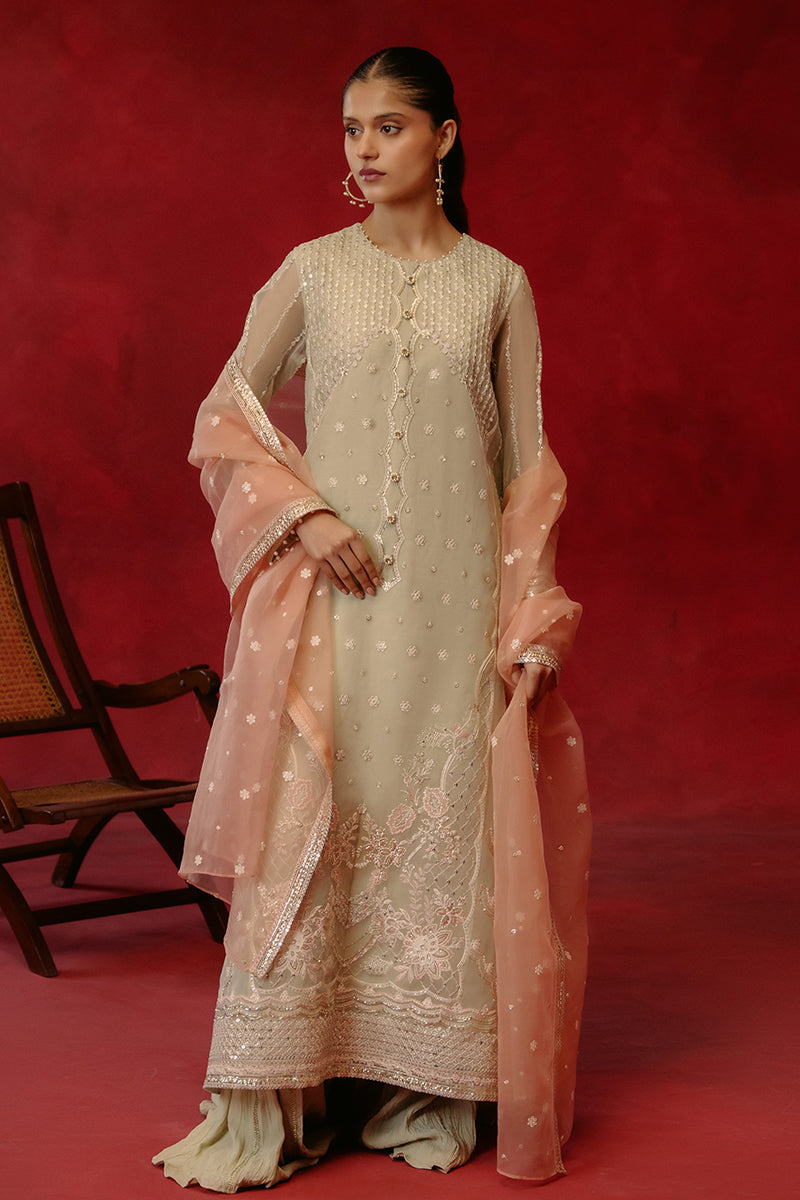 PISTACHIO DAWN-4 PIECE ORGANZA EMBROIDERED SUIT