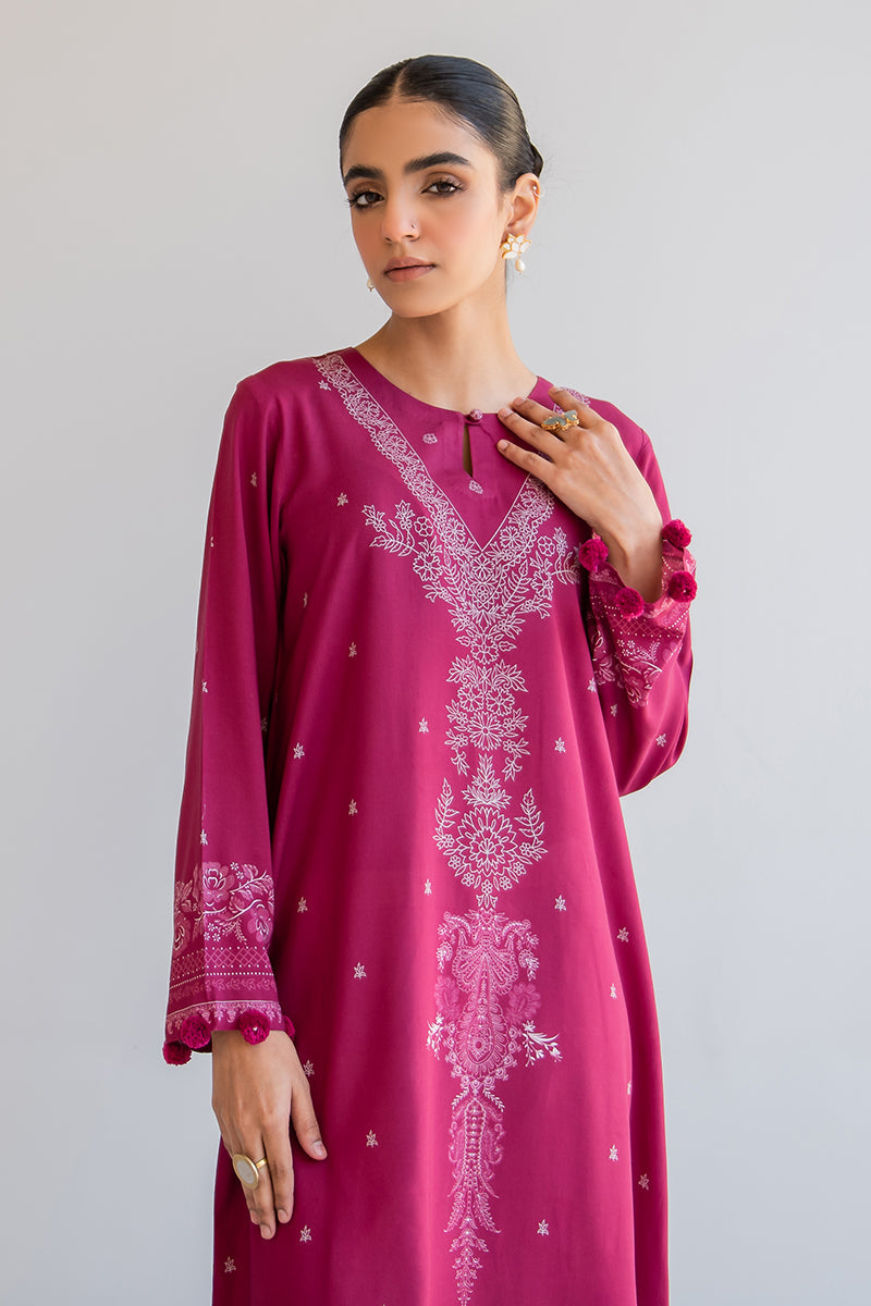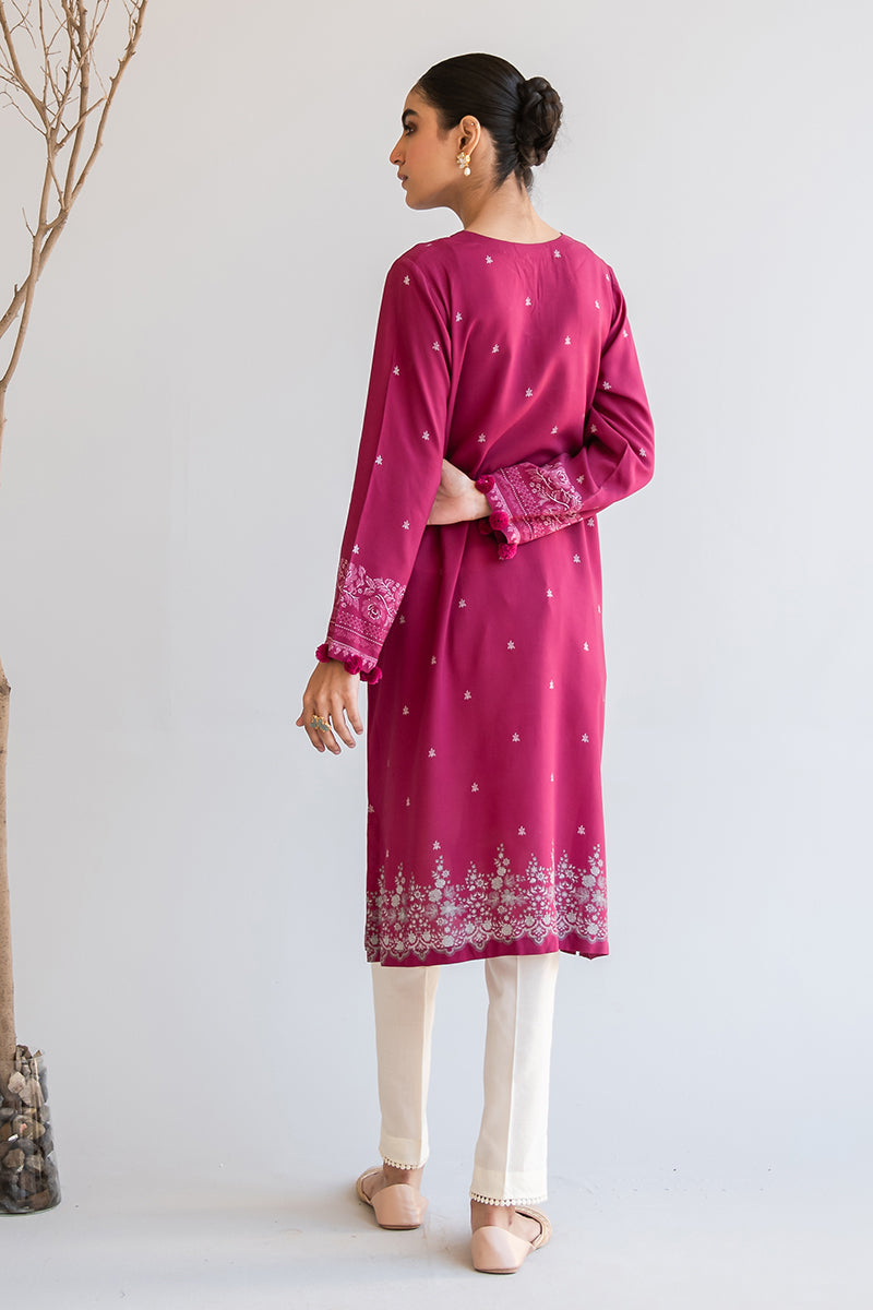 - Plum Ornate is a digital printed chic kurta for your daily wear wardrobe. Loop button neckline with embellished tassels on the sleeves make this outfit an essential for winter when paired with solid cigarette pants.
