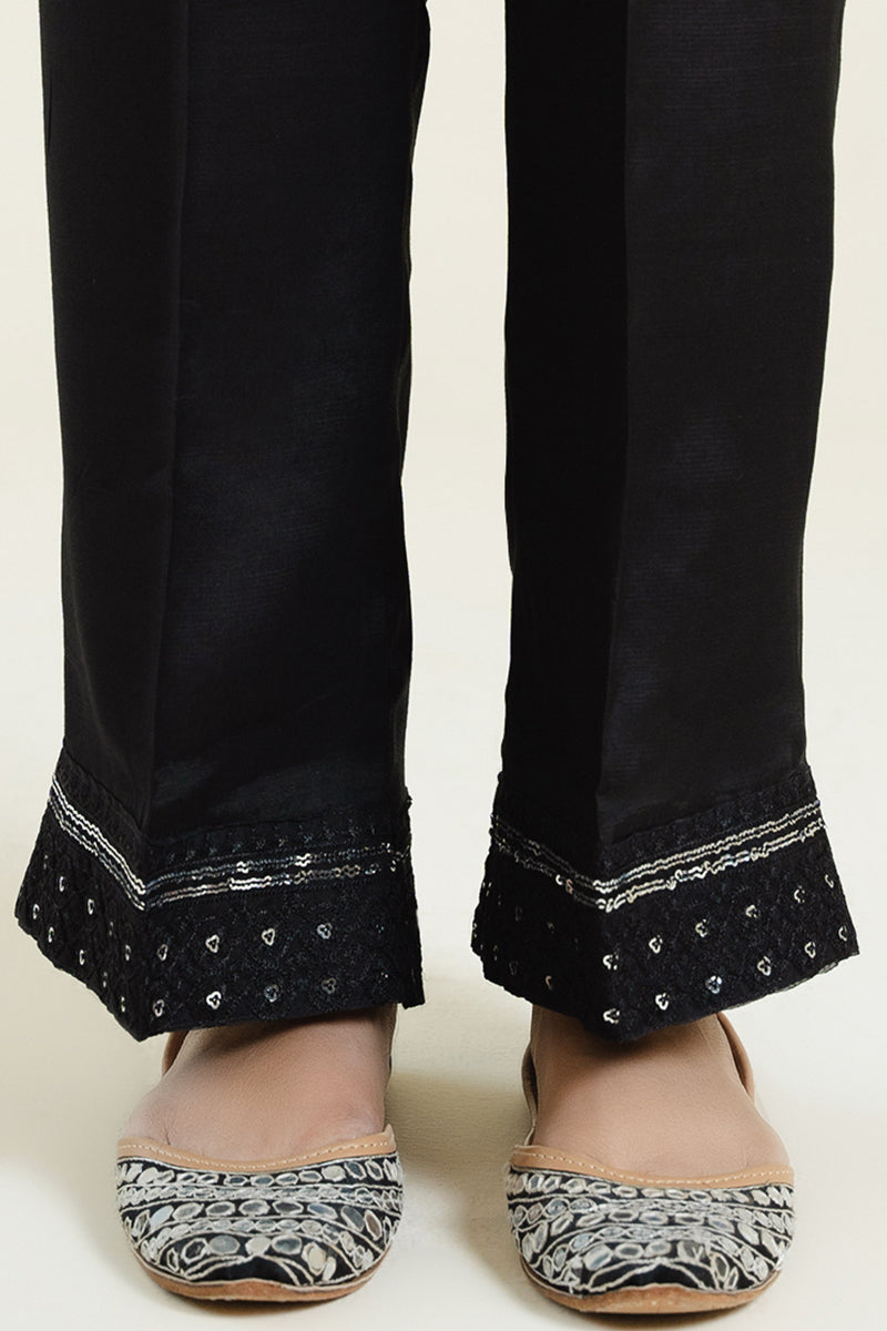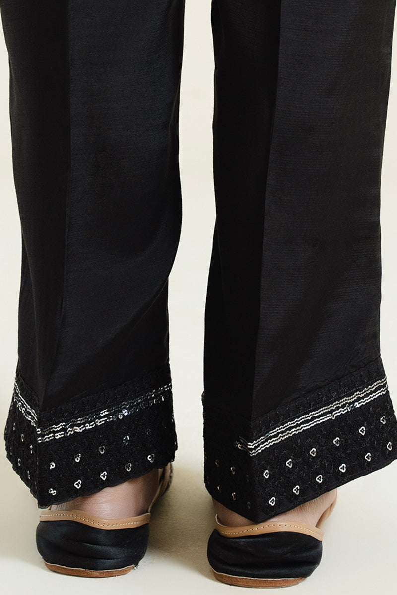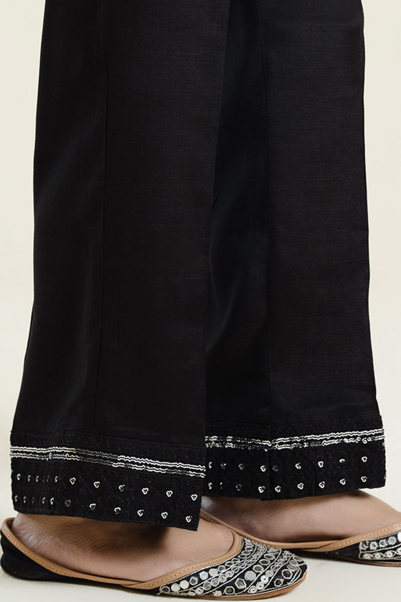 RAW SILK STRAIGHT EMBROIDERED PANTS