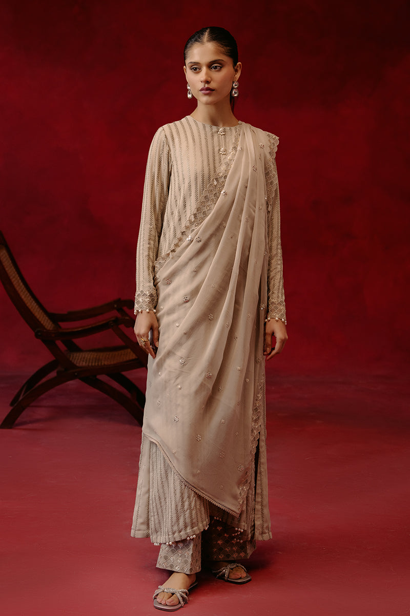 PRIMROSE ASH-4 PIECE CHIFFON EMBROIDERED SUIT