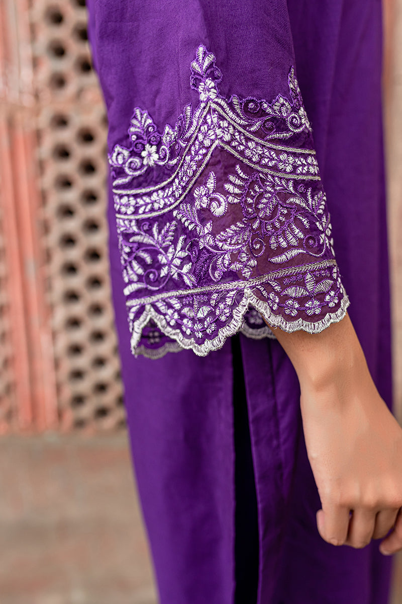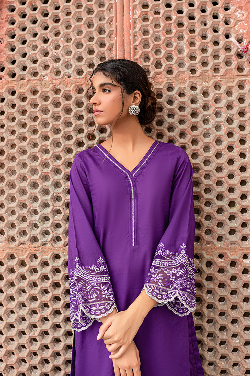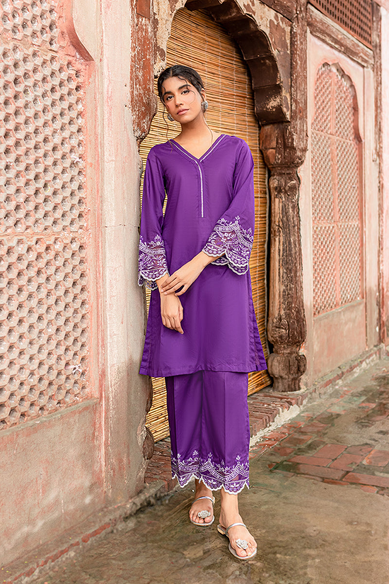 Purple Echo features a chic and minimal Co Ord set. Wear this embroidered cambric attire to stand out of the crowd.SIZE AND FIT