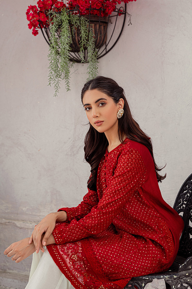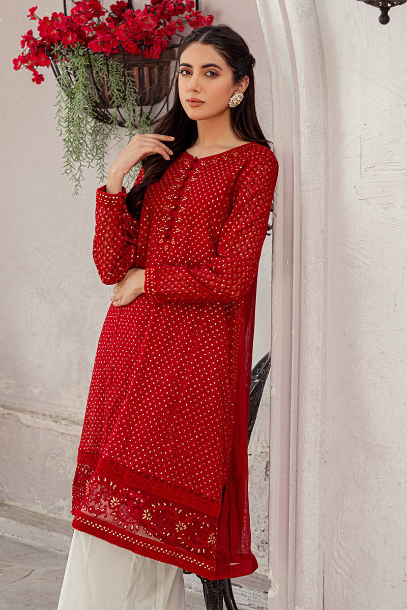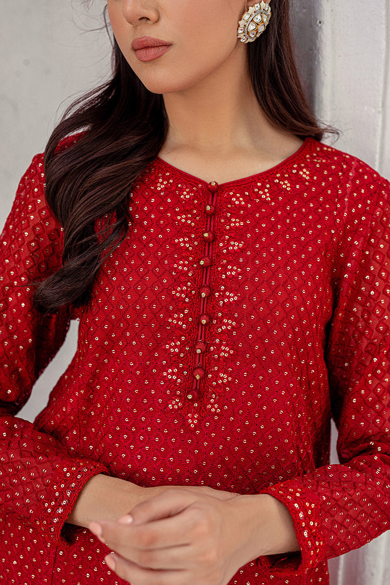 - Radiant flame is an a-line sequin embroidered shirt with embellishment on hem and embroidered buttons on the neckline. Style yourself in a half updo and dewy makeup to compliment your outfit.