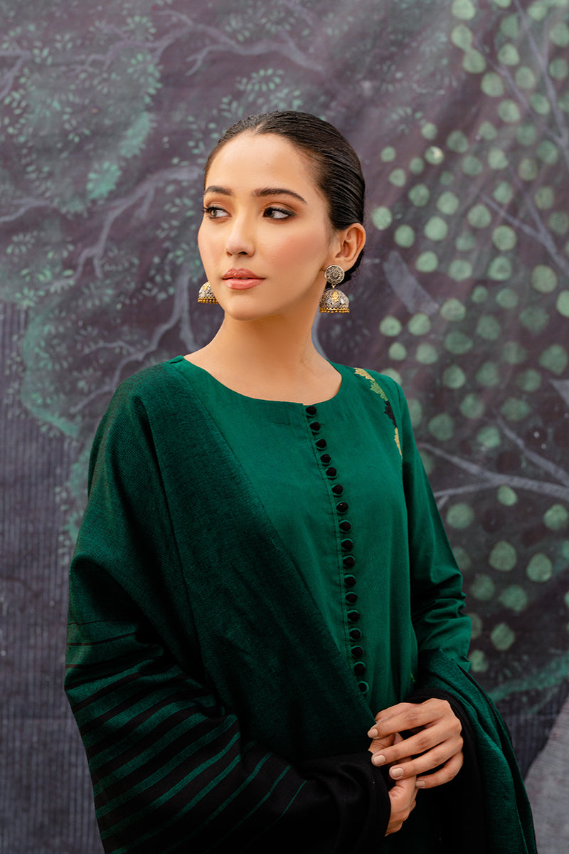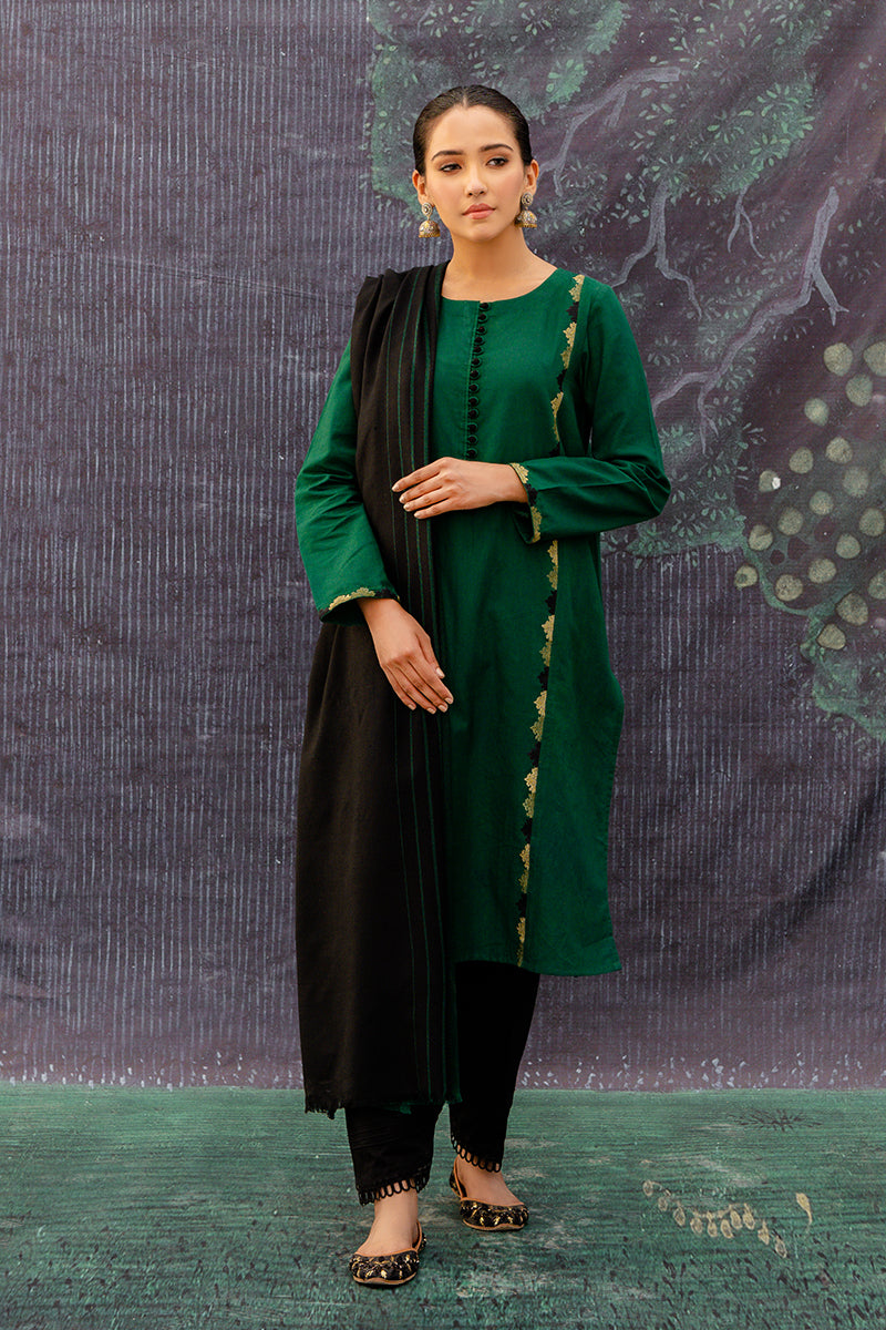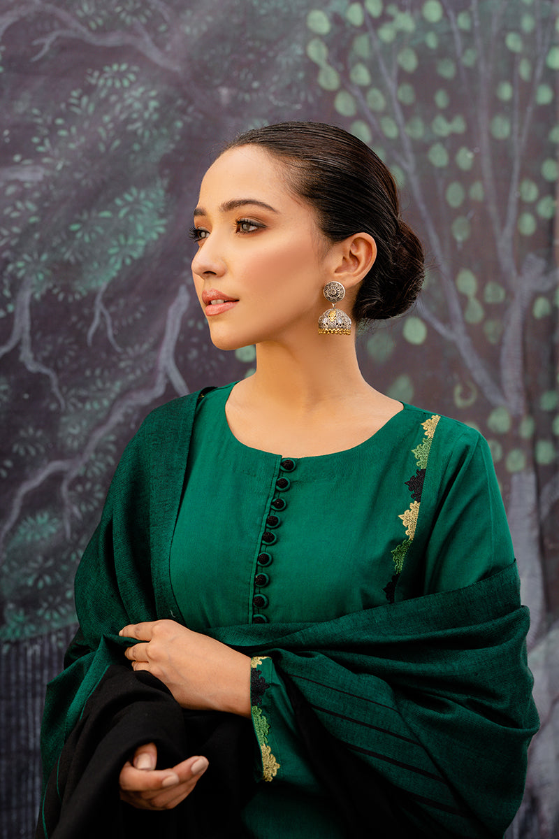 The glaring Raven Agate tells a tale of beauty combined with fairy tale. The linen shirt and woven shawl pair up with a black bottom and traditional khussa to beam up your advent.