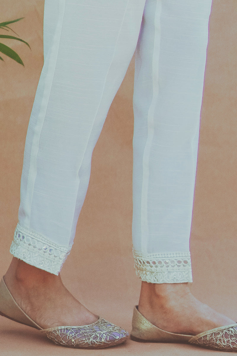 STRAIGHT FITTED PANT WITH FAUX MIRROR EMBROIDERY