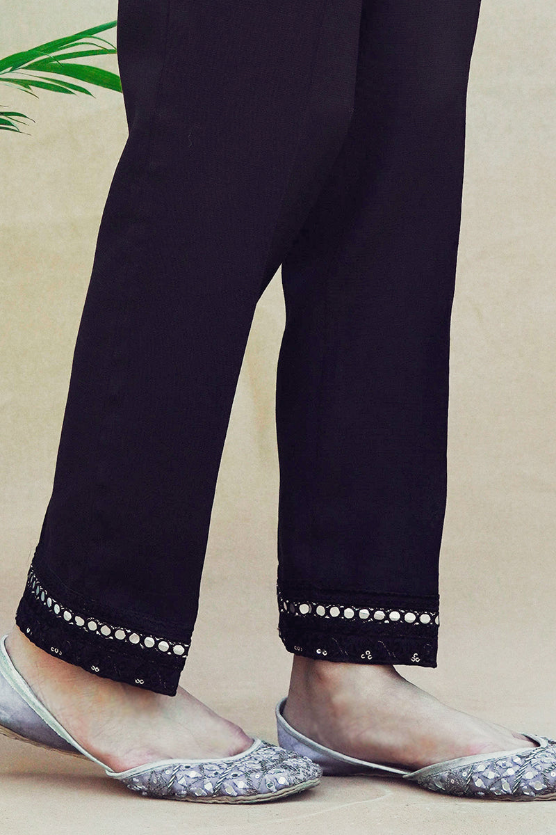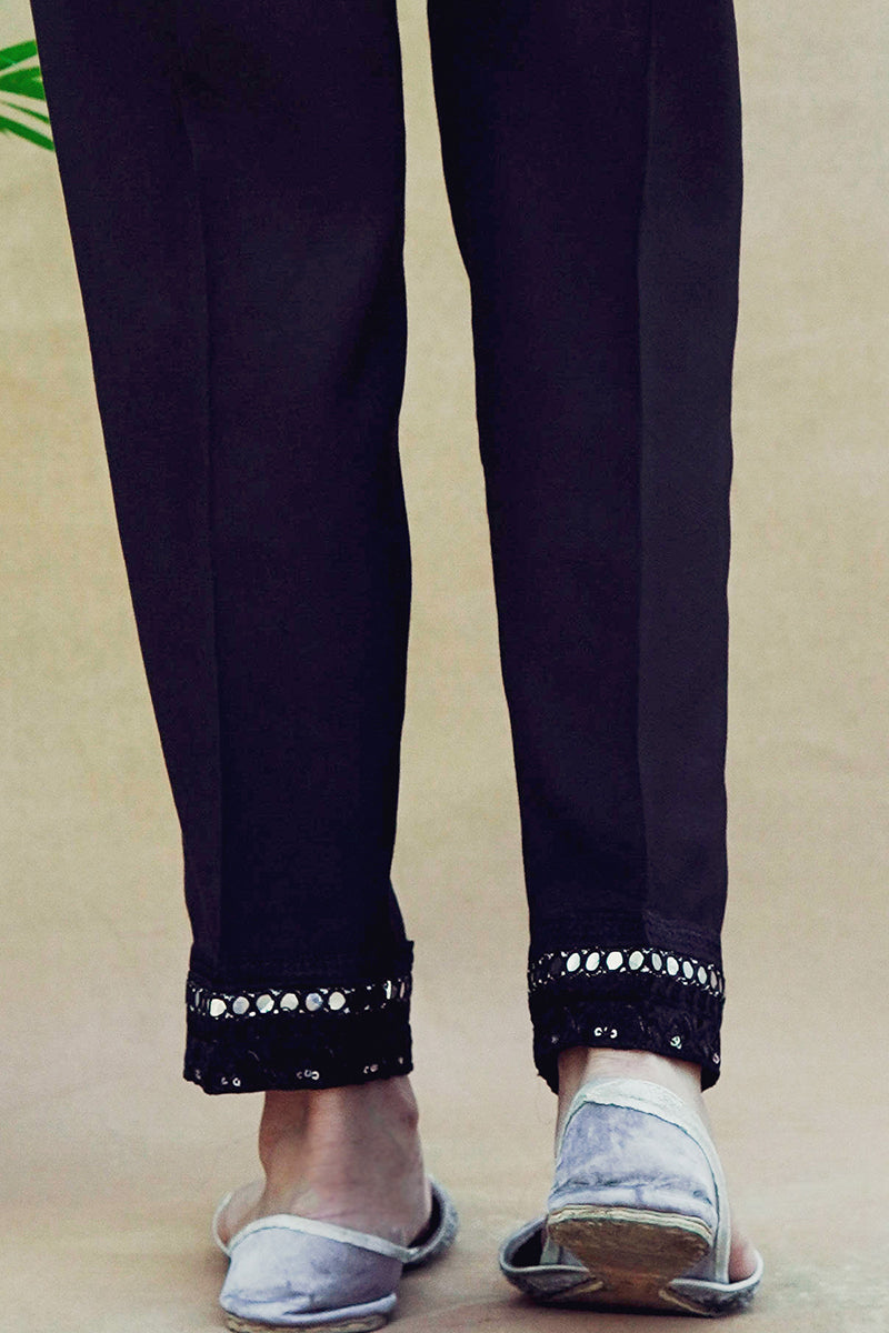 STRAIGHT FITTED PANT WITH FAUX MIRROR EMBROIDERY