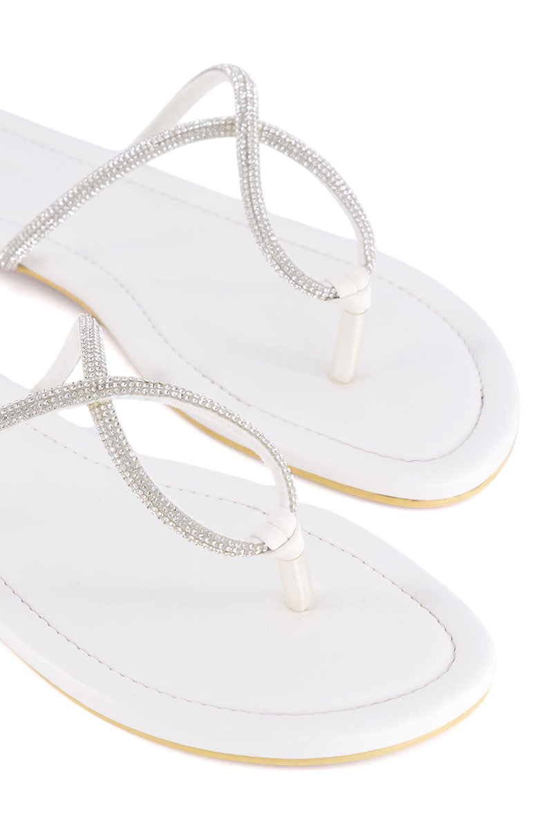 Expertly crafted with a shiny PU material, REINA-2 flats offer both style and comfort. The padded insocks provide all-day cushioning, while the custom sheet outsole ensures durability. With blingy strings and a sleek design, these flats are perfect for any occasion.