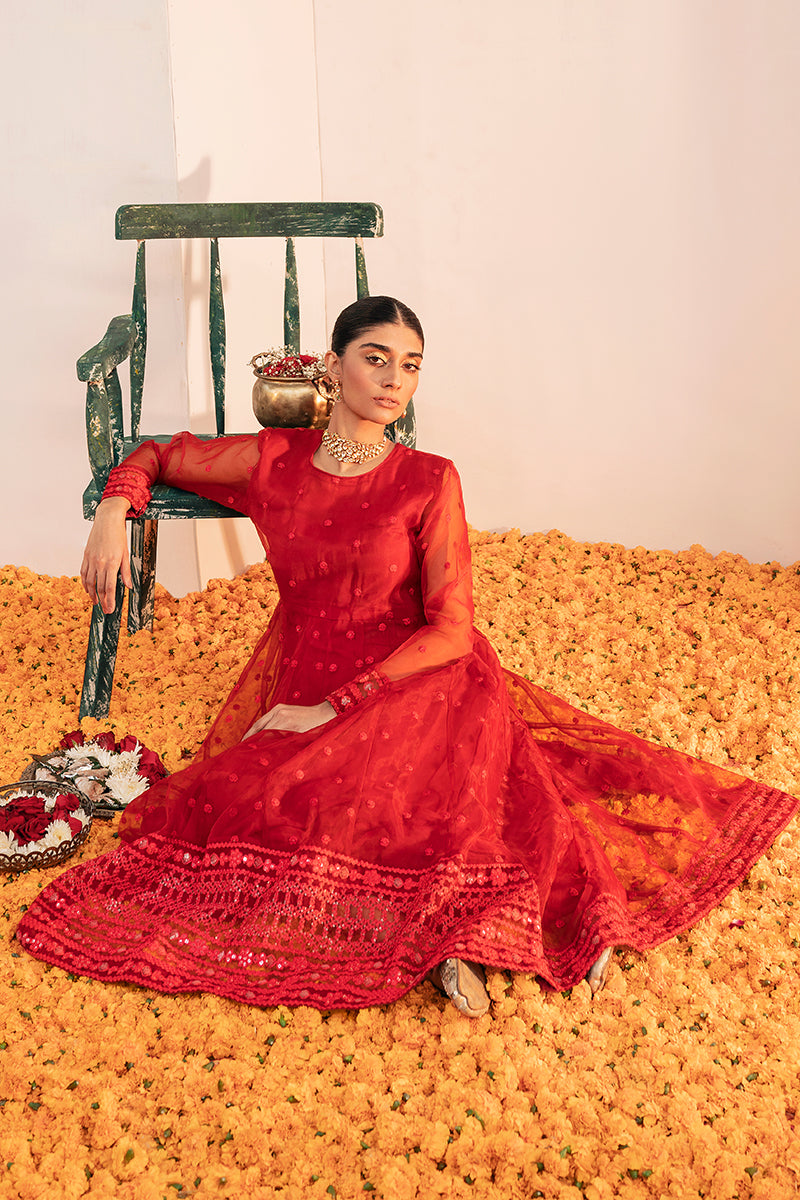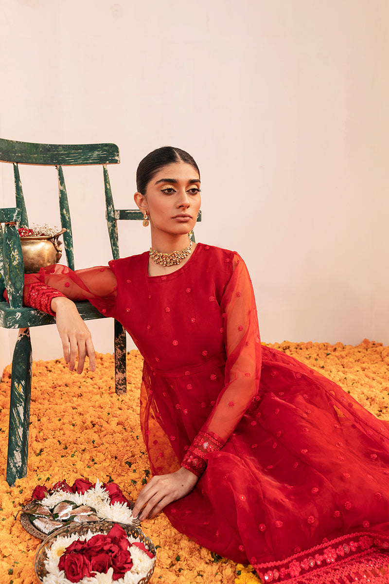 - Feel like anarkali in this red organza pishwas. Add value to your dress with a braid and traditional jewelry