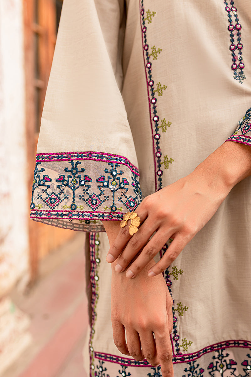 - SHEESHA EMBROIDERED AT SHIRT HEM & SLEEVES HEM