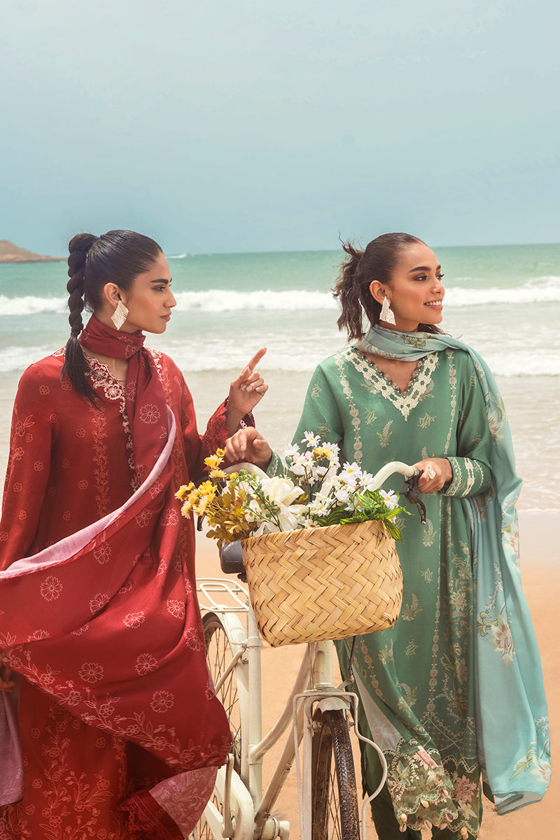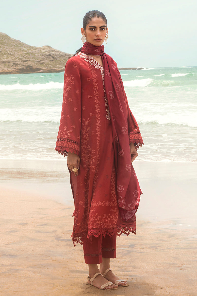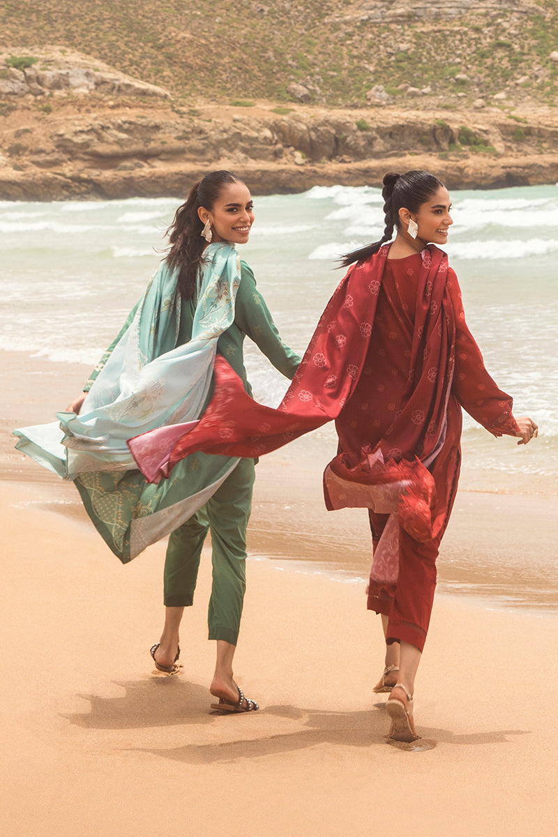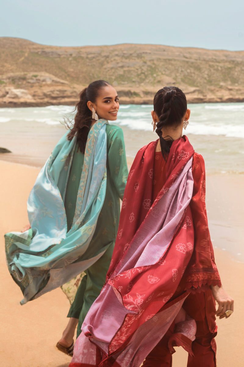 Show off your style with this ROISIN GARNET-3PC SATIN PRINTED SUIT. Featuring a 100% cotton satin digital printed shirt with a 40" embroidered patti for placket, dyed cambric trousers, and a digital printed shawl, this suit offers a fashionable and comfortable look. Perfect for any occasion, you're sure to look stunning in this suit.
