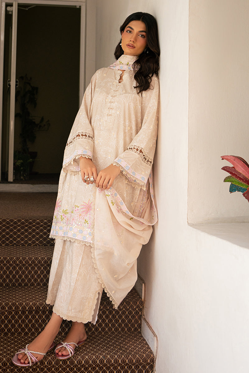 - Expertly designed for the modern woman, the ASHEN AURA-3 PIECE EMBROIDERED LAWN SUIT offers a sophisticated blend of lawn embroidered and printed fabrics. The shirt, with its intricate embroidery, is crafted from durable lawn material for comfort and style. Coupled with a printed cambric trouser and an embroidered lawn dupatta, this suit is a perfect addition to your wardrobe.