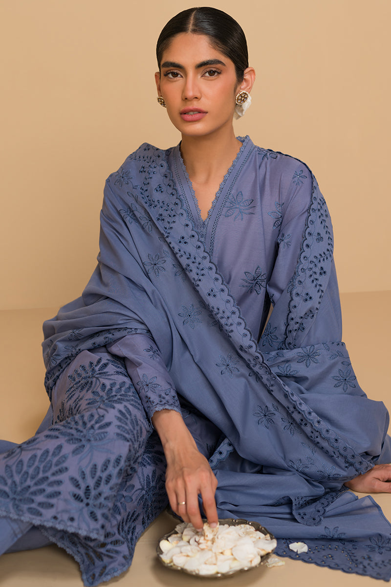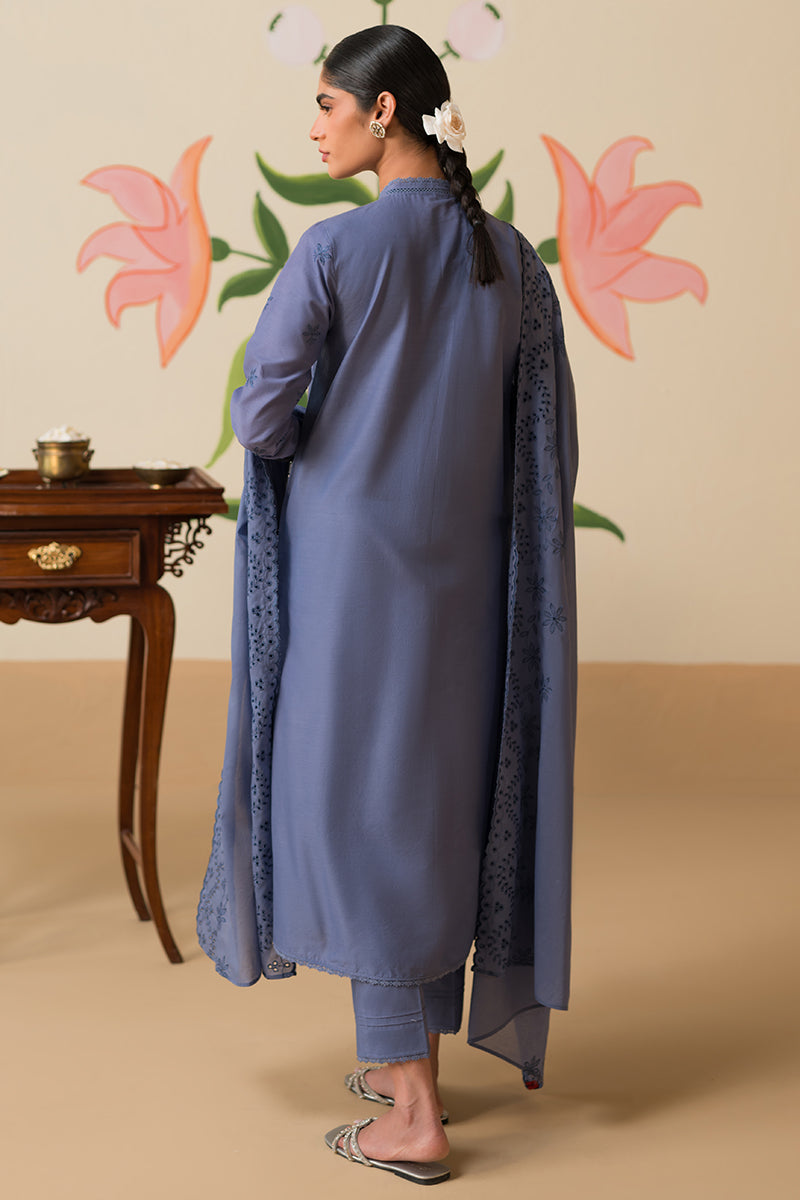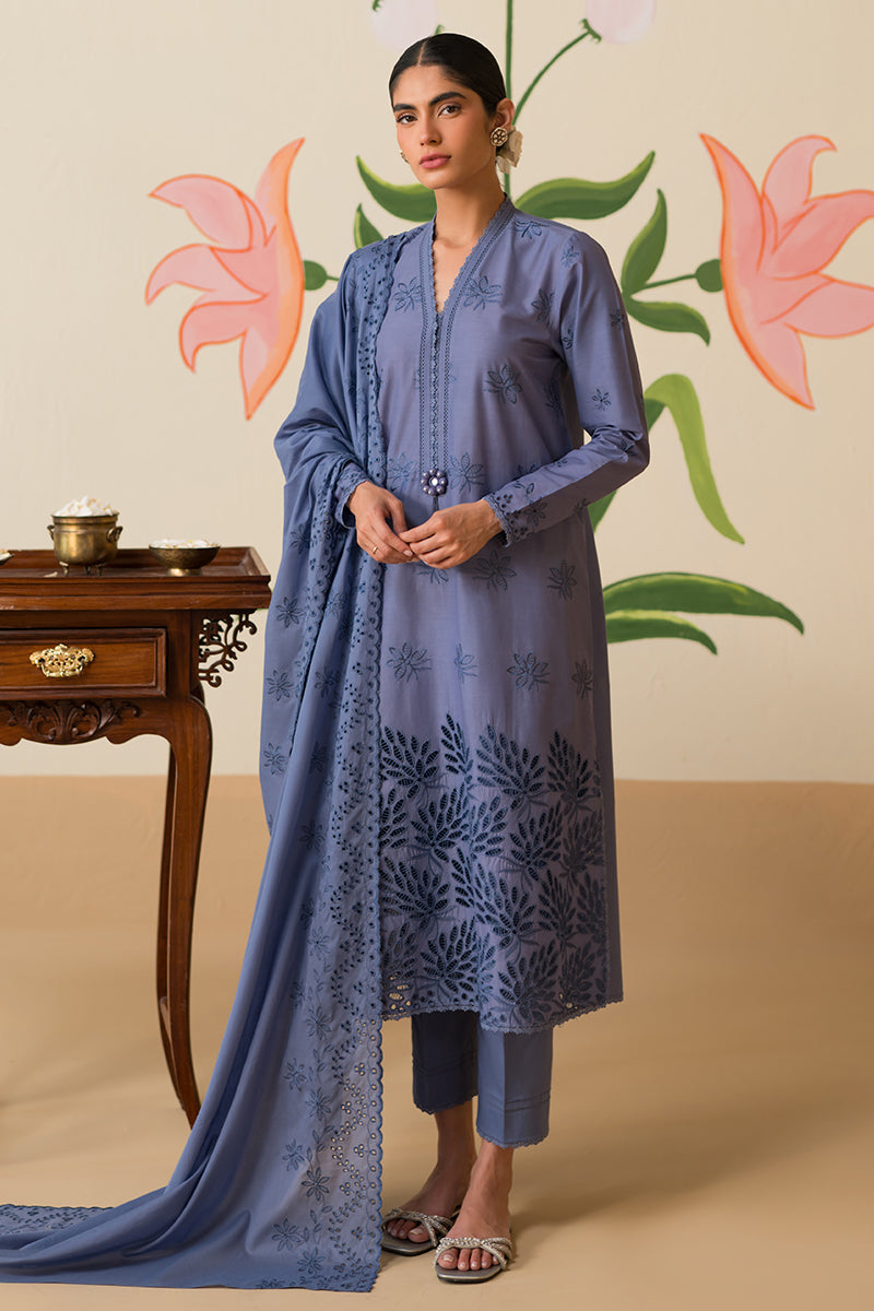 BLUE FERN-3 PIECE CHIKANKARI SUIT