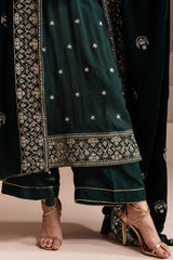 EMERALD GRACE-3 PIECE EMBROIDERED ORGANZA SUIT