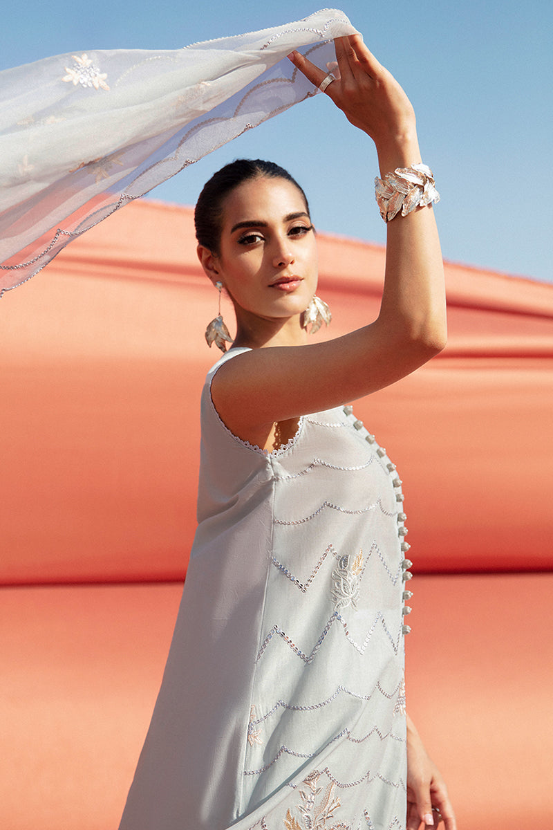 - Enhance your wardrobe with our FLORAL TALE-3 PIECE EMBROIDERED LAWN SUIT. This unstitched suit features embroidered front and sleeves, with a dyed back, cambric dyed trouser, and organza embroidered dupatta. Experience elegant and comfortable style, perfect for any occasion.