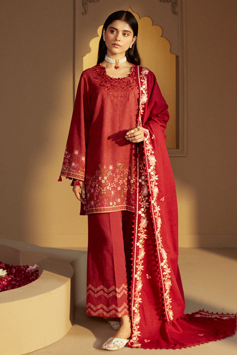 - This printed Khaddar suit features a lightweight, durable fabric for everyday wear. The embroidered shawl adds a touch of elegance to the dyed trouser and printed shirt, making it a stylish yet comfortable ensemble. Perfect for any occasion, this 3-piece suit offers both fashion and function.