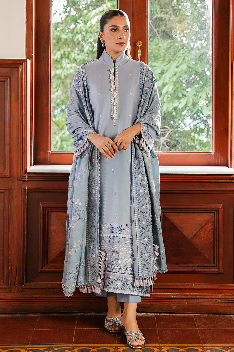 SERENITY BLUE-3PC SATIN EMBROIDERED SUIT