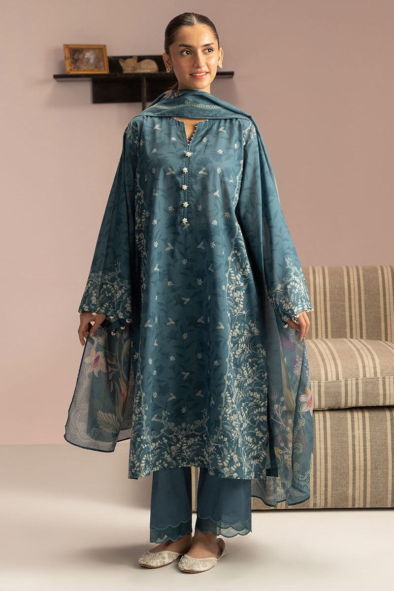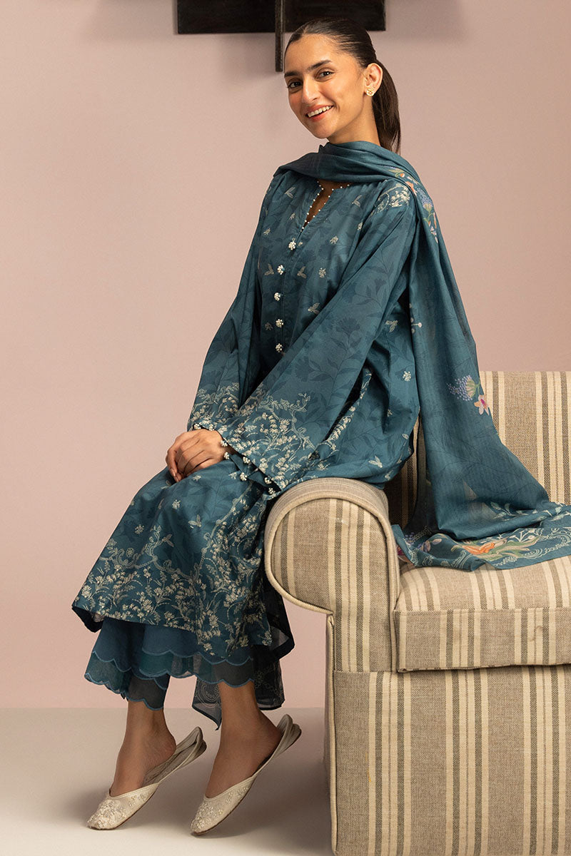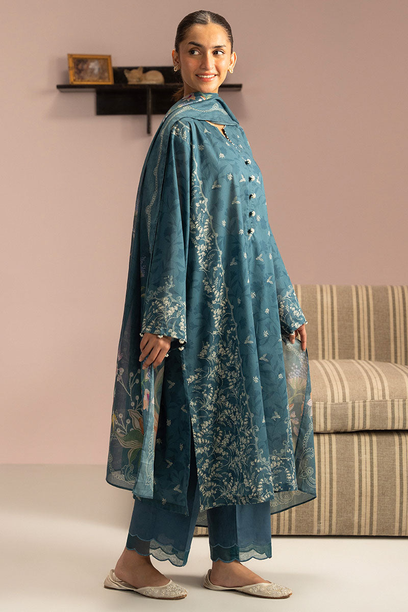TEAL DUST-3PC PRINTED LAWN SUIT