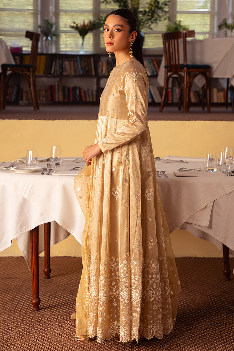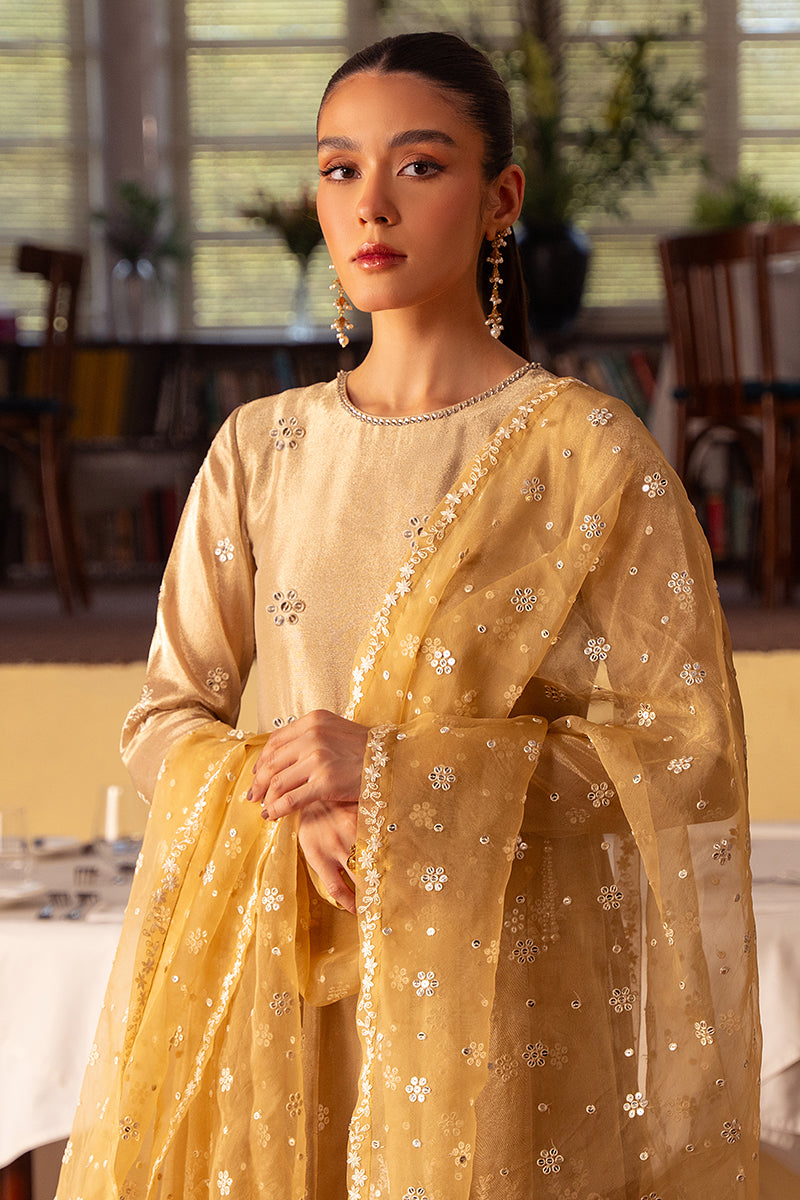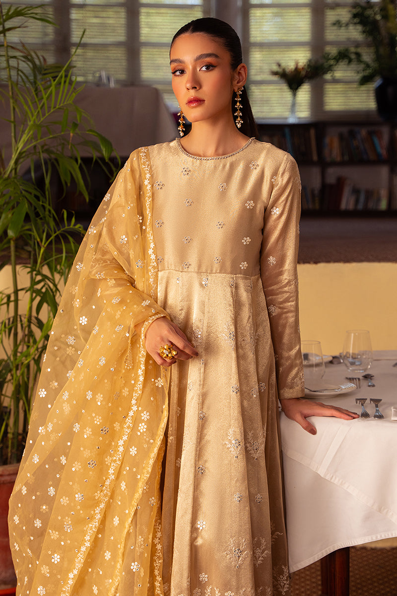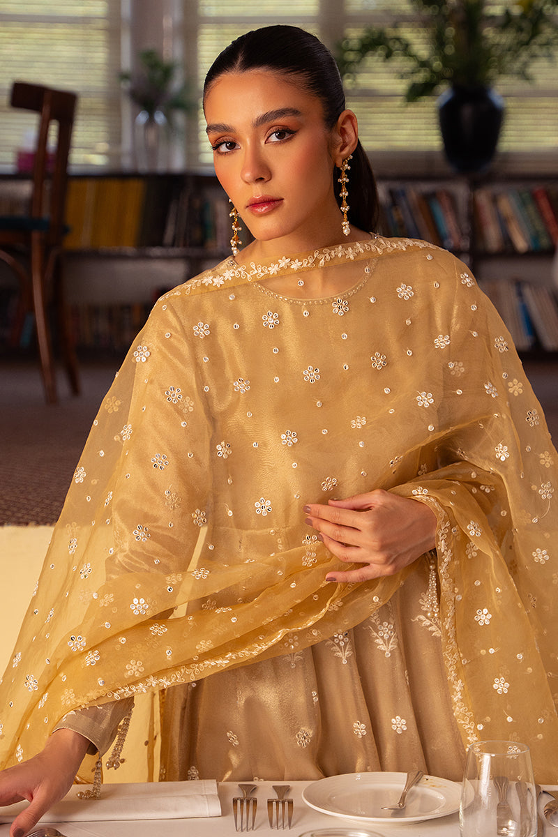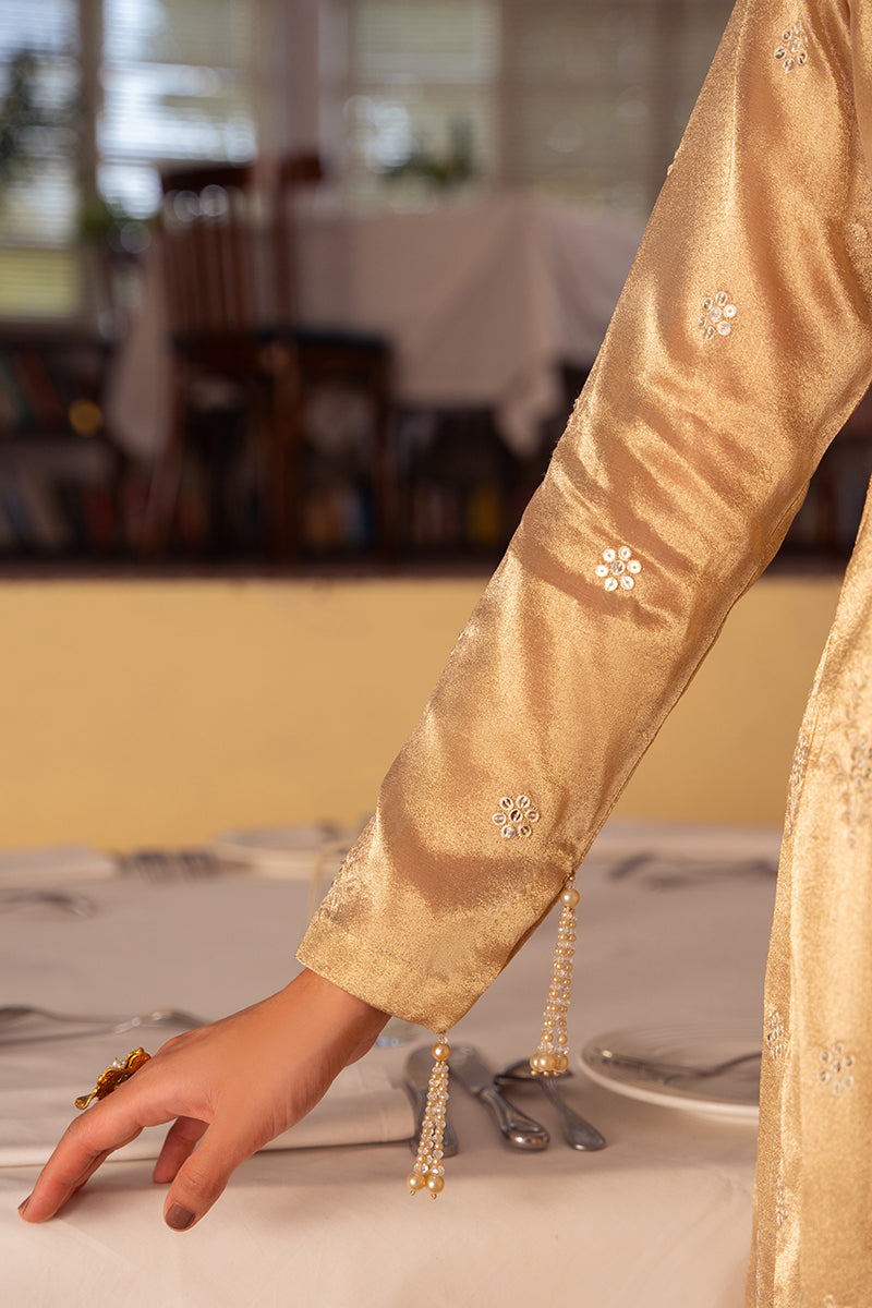 - Elevate your traditional wardrobe with our elegant AMBER AURA-2 PC set. The classic pishwas style features intricate zari embroidery on both the front and back. The round neck is adorned with embellishments, while the sleeves and dupatta are beautifully embroidered and finished with delicate tassels. A perfect blend of sophistication and luxury.
