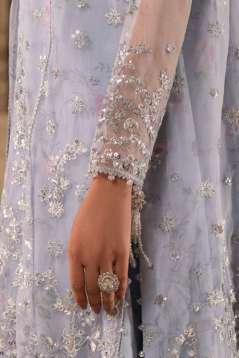 AMETHYST DUSK combines timeless elegance with intricate craftsmanship. This straight-cut panelled shirt features premium organza with exquisite front panelling adorned with embroidery and delicate tasseling details. The back showcases sophisticated embroidered work, while the crew neckline is enhanced with ornate adda embroidery. Fitted sleeves display matching embroidered patterns and tassel accents for refined movement. Paired with a silk printed sharara featuring complementary embroidery, this ensemble delivers a polished, contemporary look rooted in traditional artistry. Perfect for special occasions and celebrations.