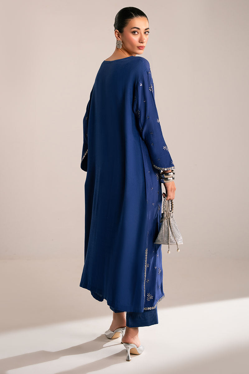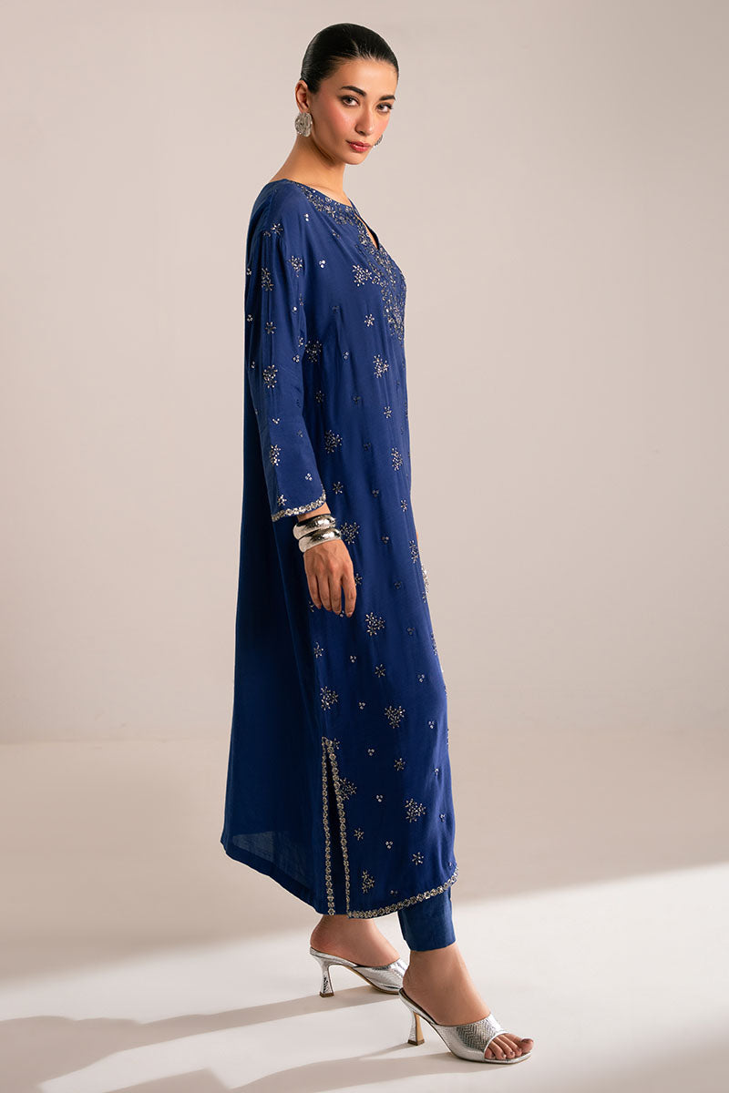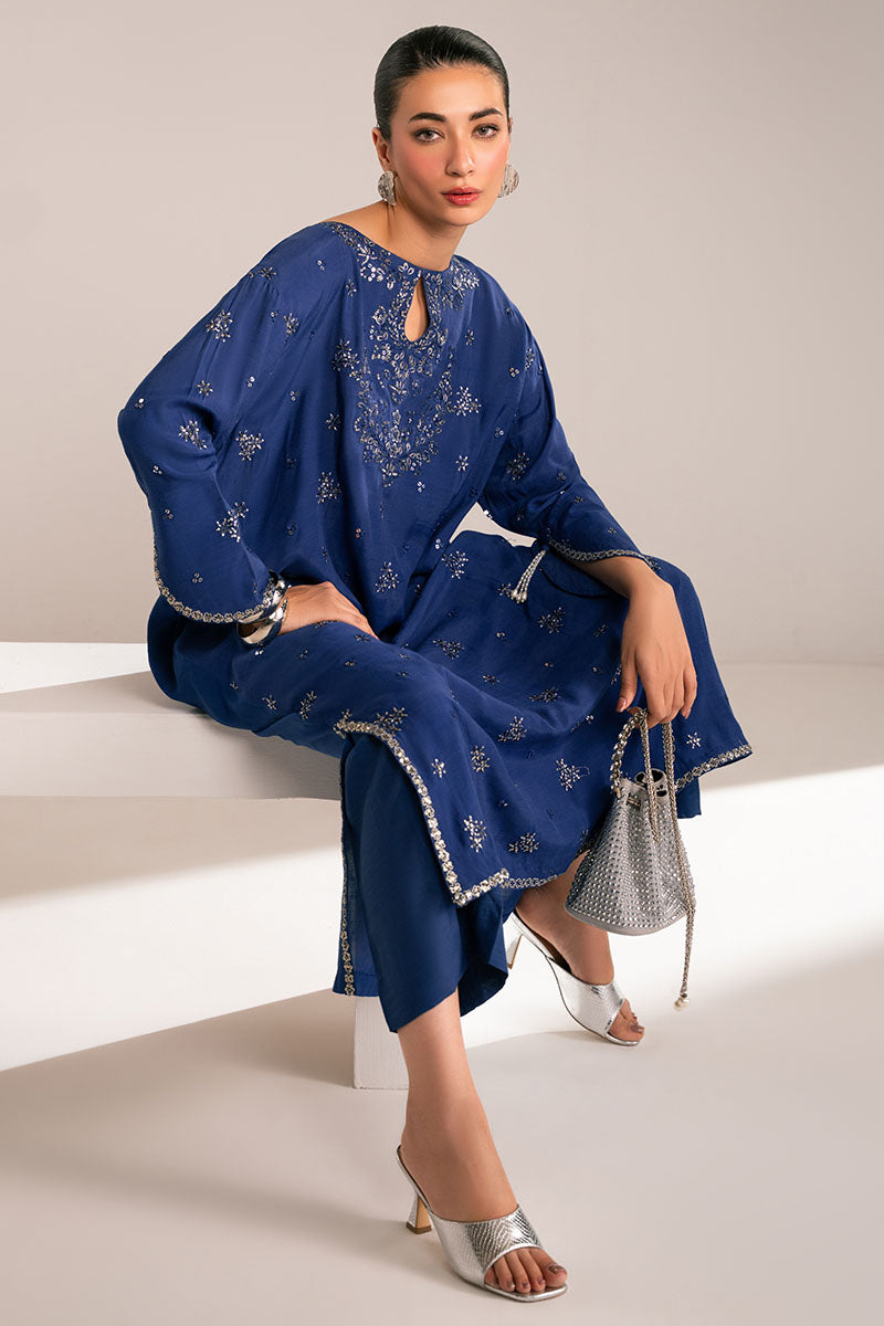 AZURE SPARKLE EMBROIDERED SILK SHIRT