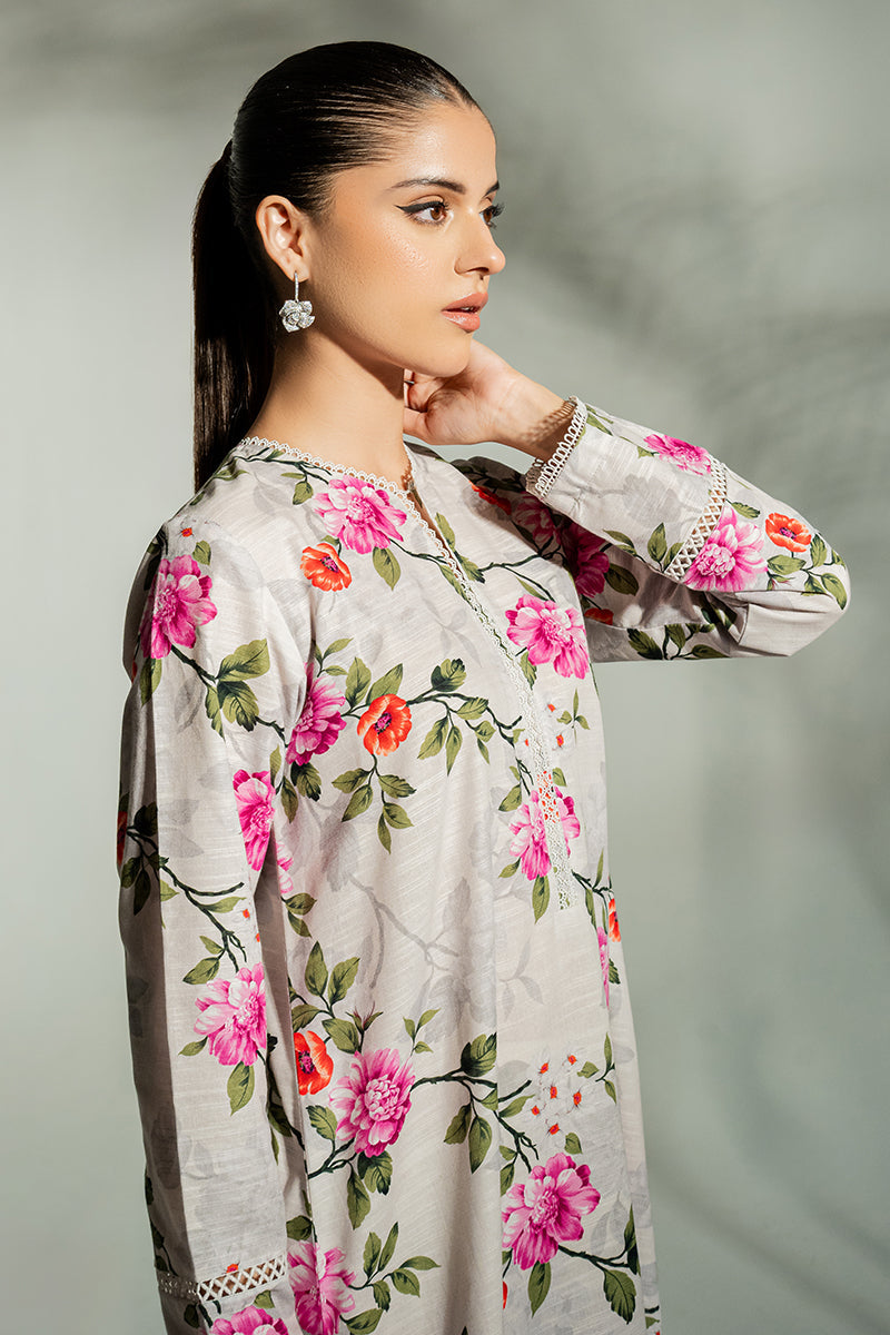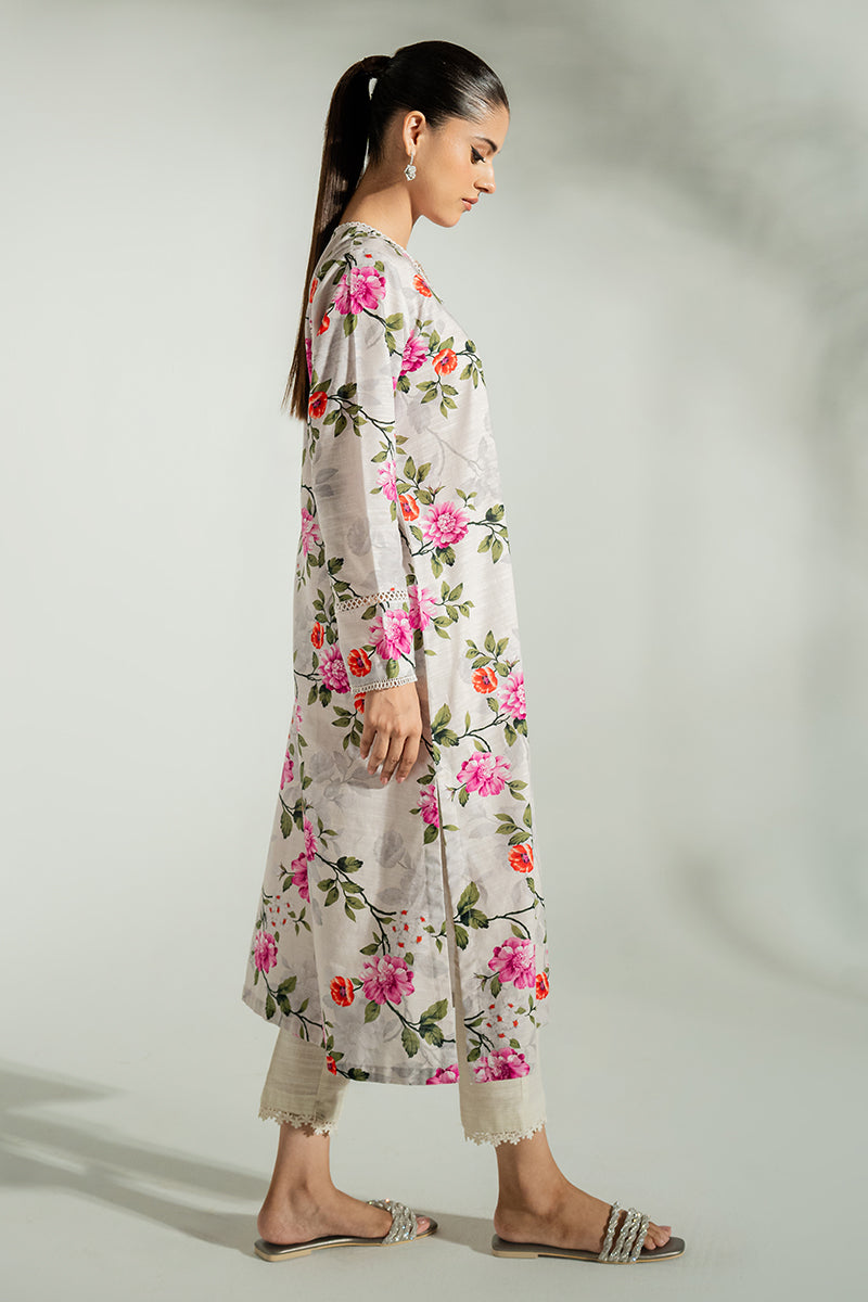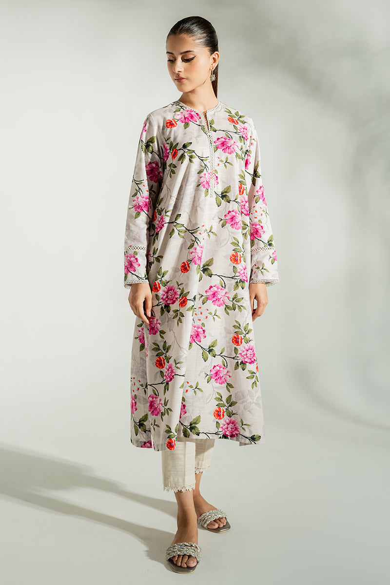 - Our Bee Balm Shirt is made from a lightweight khaddar fabric with a stylish straight fit. It features a round neckline with lace detail and printed sleeves with lace detail. Its front and back are printed with unique designs. Perfect for any occasion.