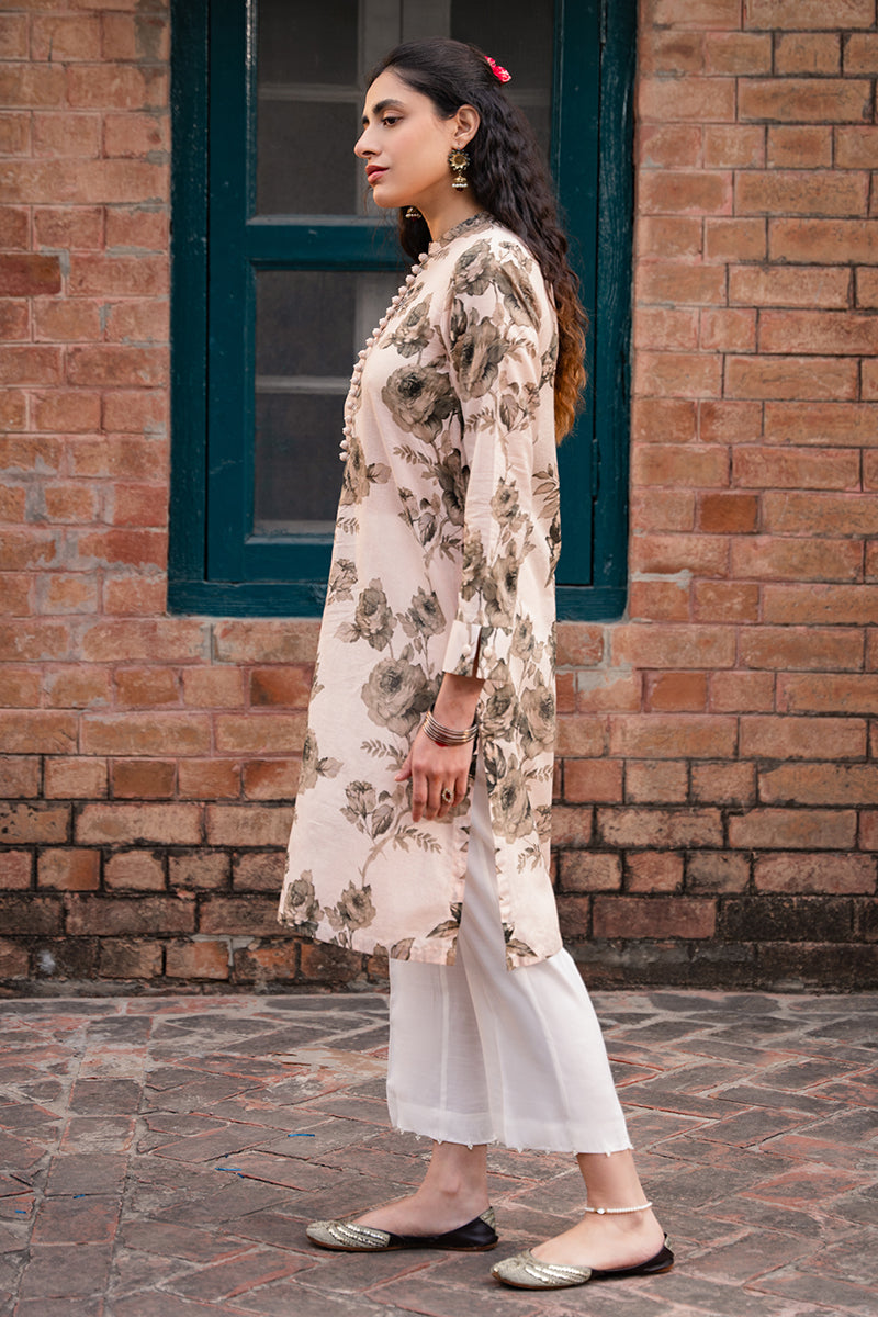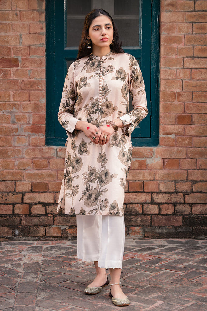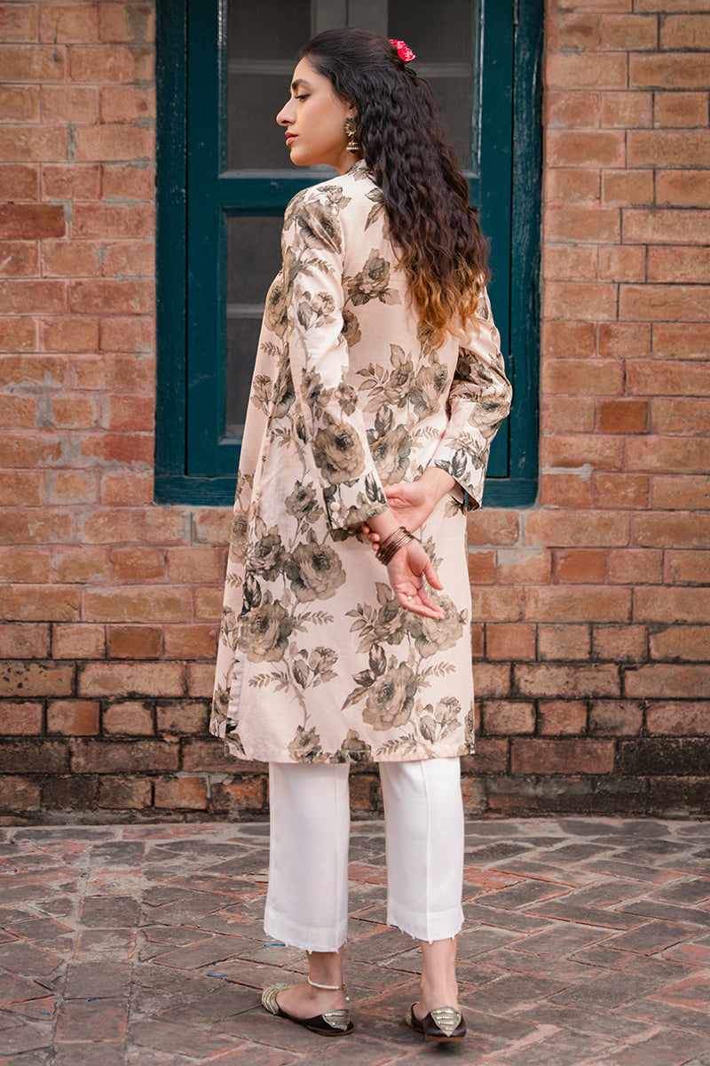 - This stylish BUFF BISQUE PRINTED LAWN SHIRT is perfect for any occasion. The straight shirt design in lawn fabric features a front and back print, adding a touch of uniqueness. The neckline boasts a band collar with loop buttons, while the sleeves are embellished with duff and tassel details. Comfortable and fashionable, this shirt is a must-have for every wardrobe.